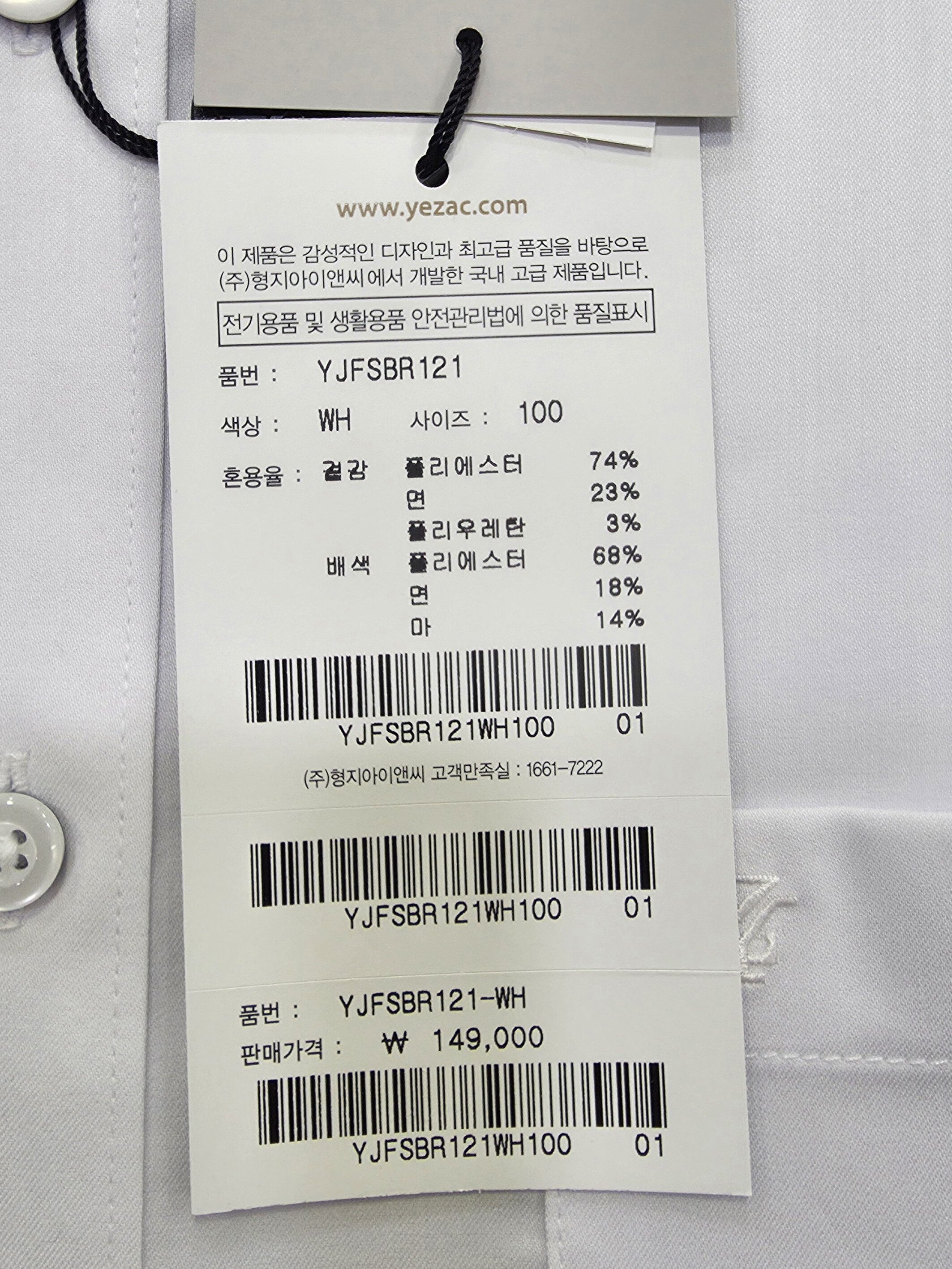 예작예작 화이트 면TC 스판 일반핏셔츠 YJFSBR121WH (P003737858