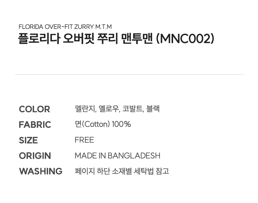 탑보이탑보이 플로리다 오버핏 쭈리 맨투맨 (MNC002)