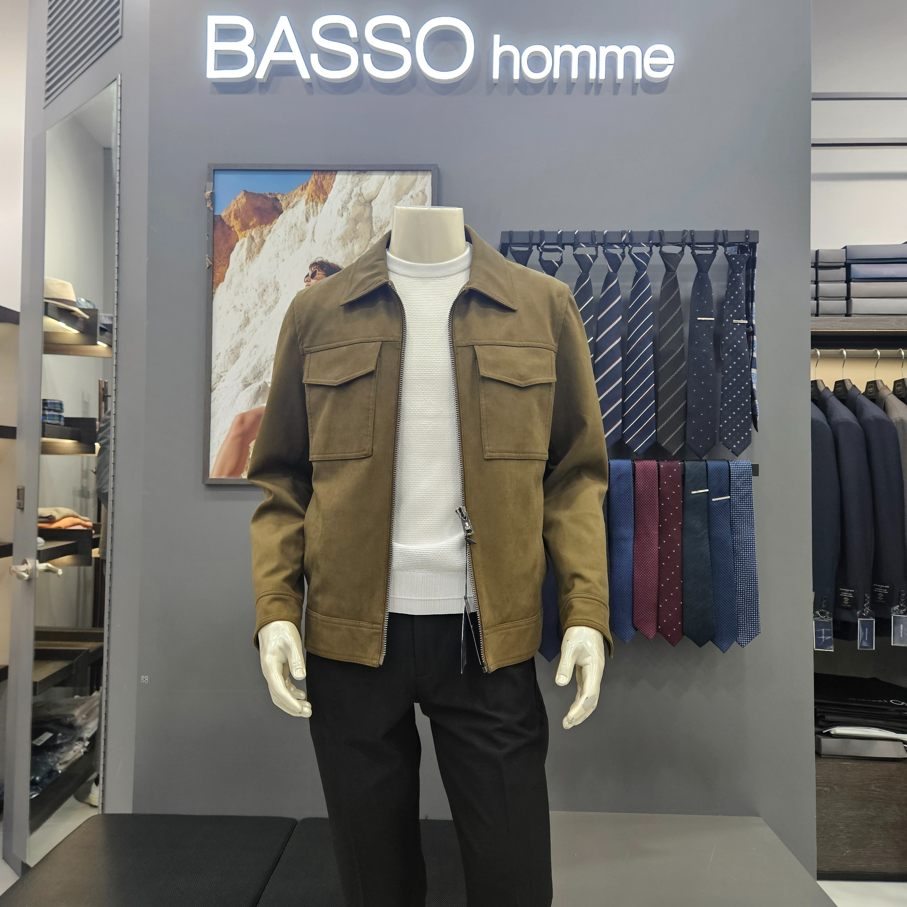 스웨이드 카키 간절기 카라점퍼