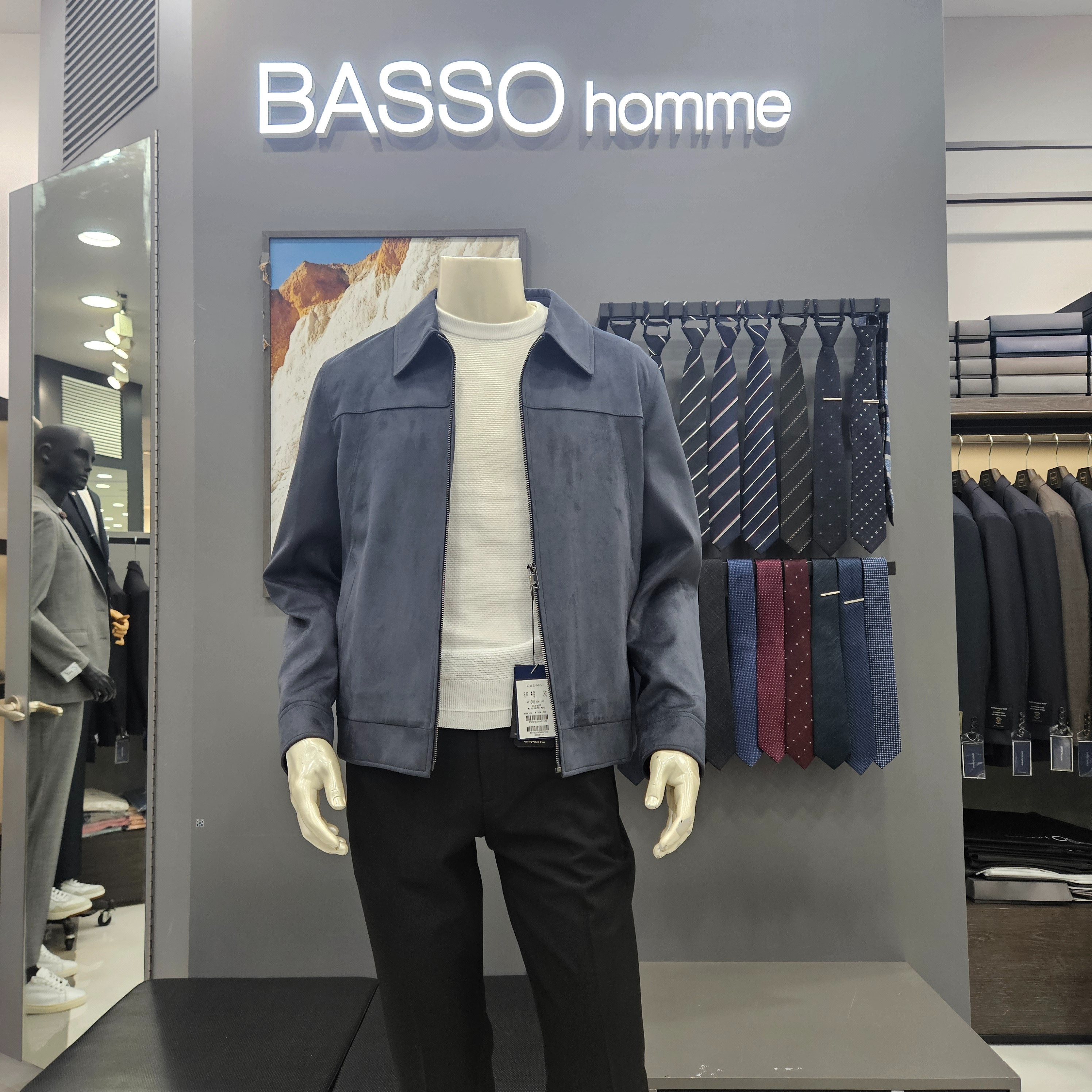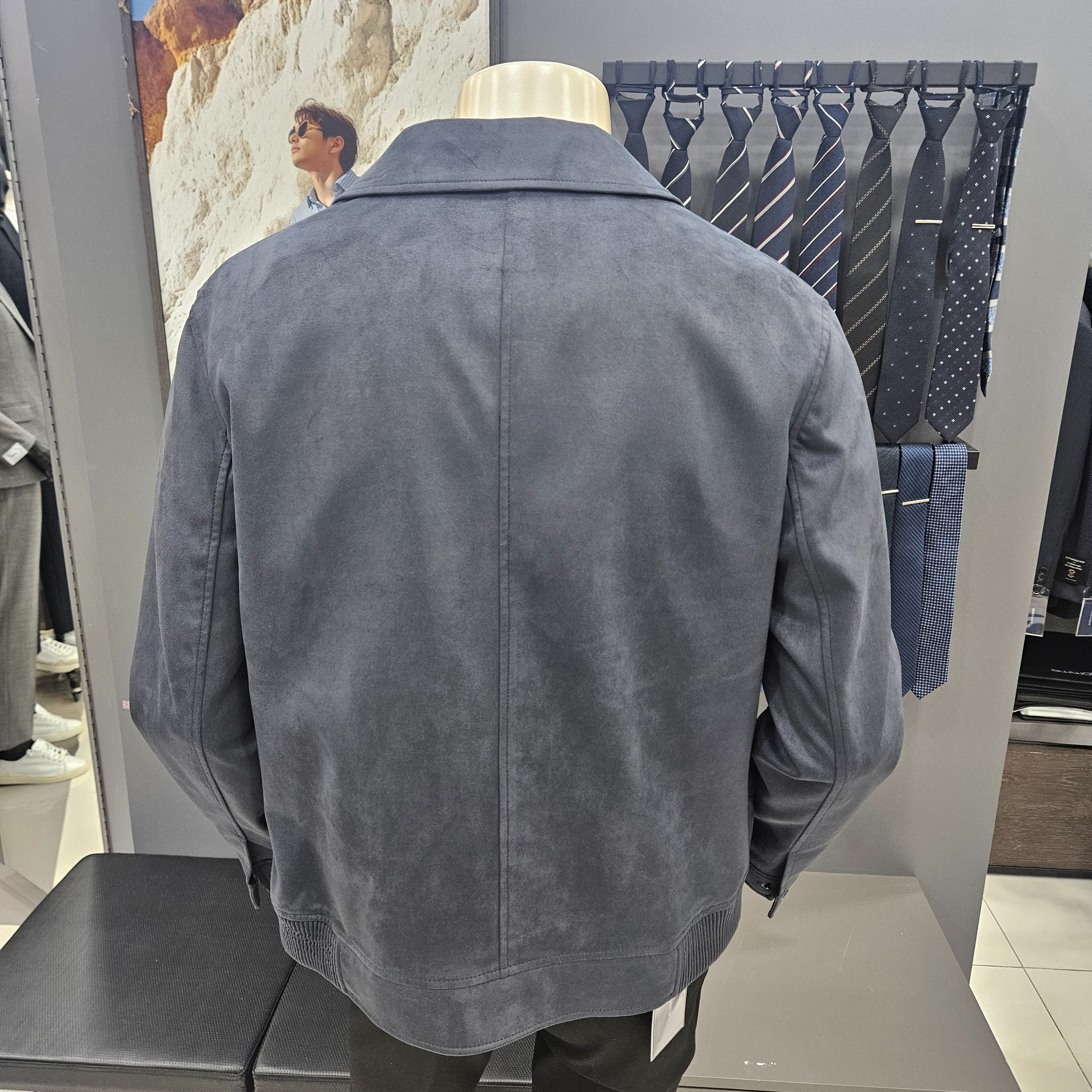 스웨이드 블루 간절기 카라점퍼