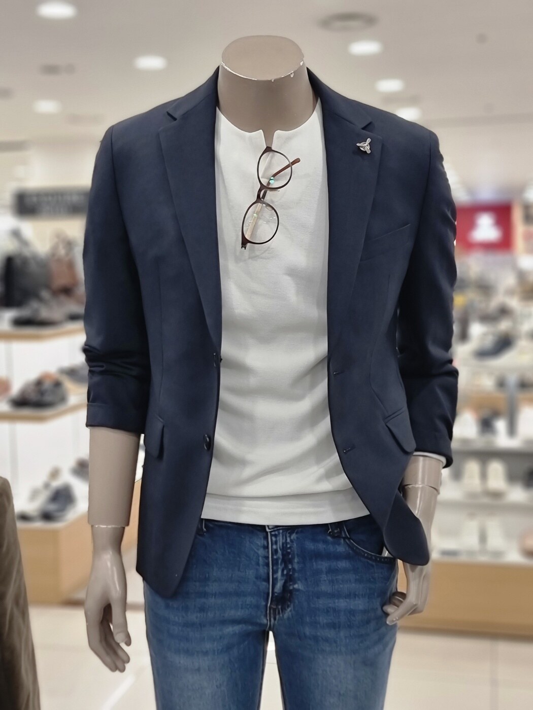 다크 네이비 사계절 멀티 자켓입니다 너무 얇지 않은 두께에 소매에 안감이 없는 디자인으로 한겨울을 제외하고 봄,가을 간절기 착용하기 좋습니다 사방스판으로 착용감이 좋고 활동이 편리합니다 계절이 바뀌는 간절기 청바지나 슬렉스 어디든 코디가 가능한 다계절 블레이저입니다 (부토니에는 디피용입니다)