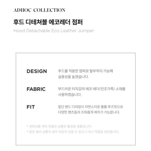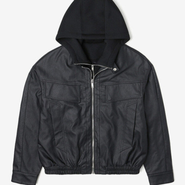 볼륨 루즈핏 후드 탈부착 레더 점퍼입니다