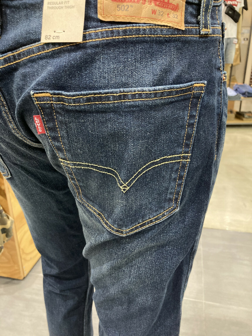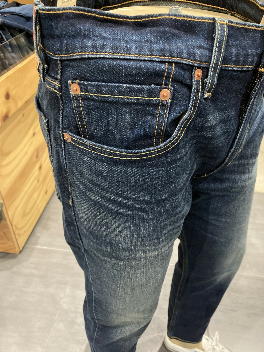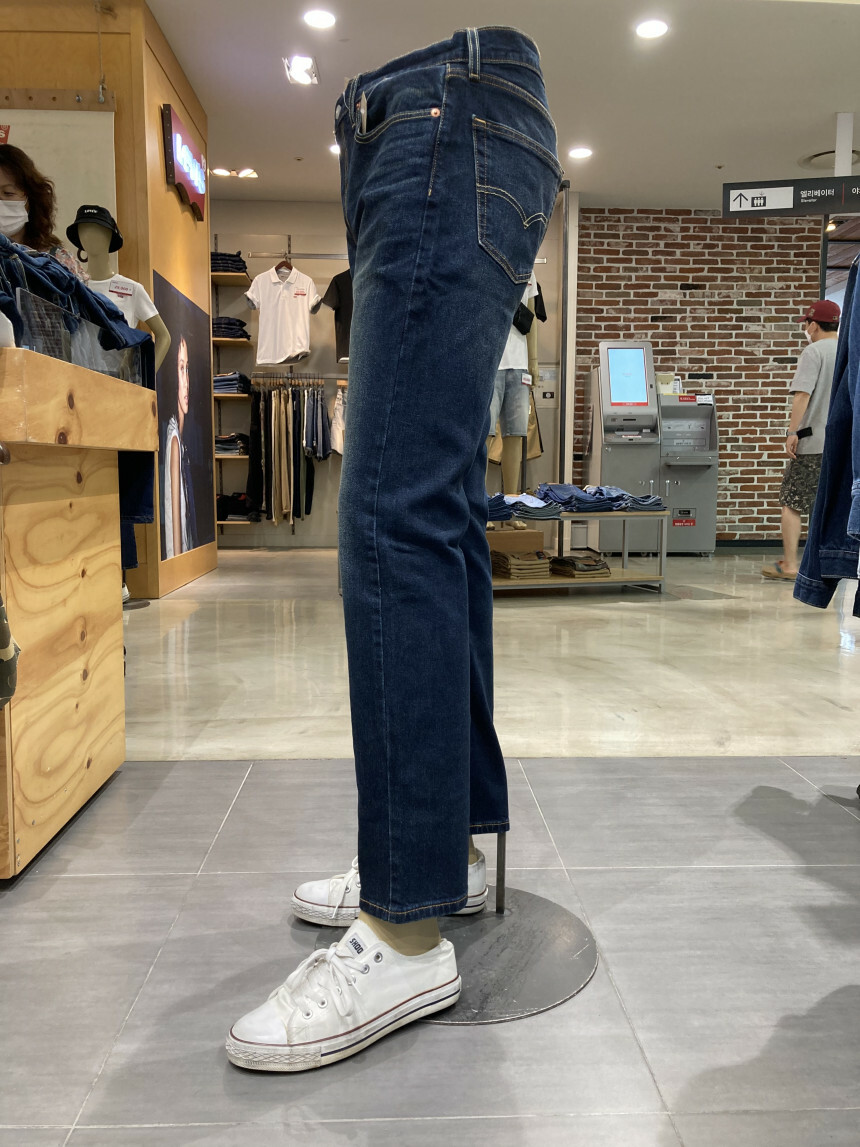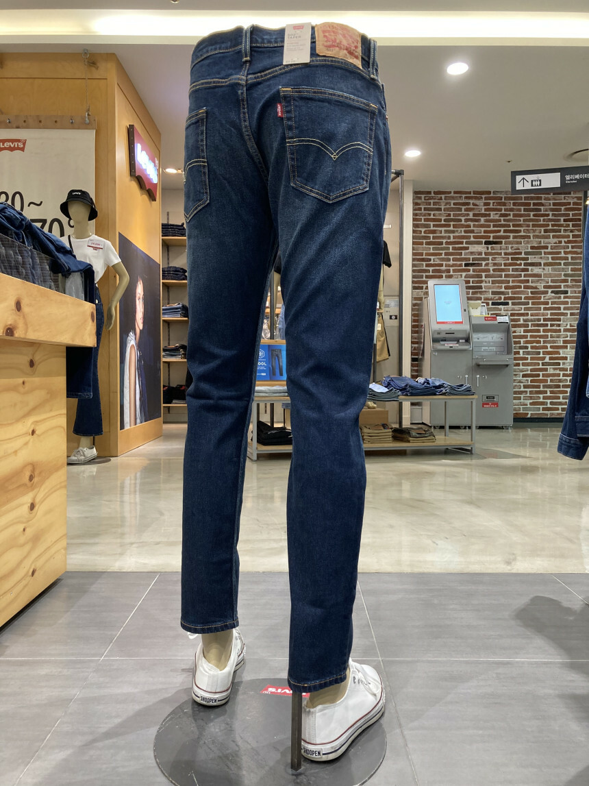 다크블루컬러에 워싱이 들어가있는 남성 502 테이퍼 청바지입니다.