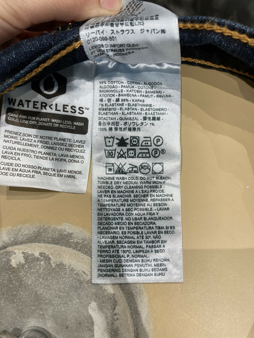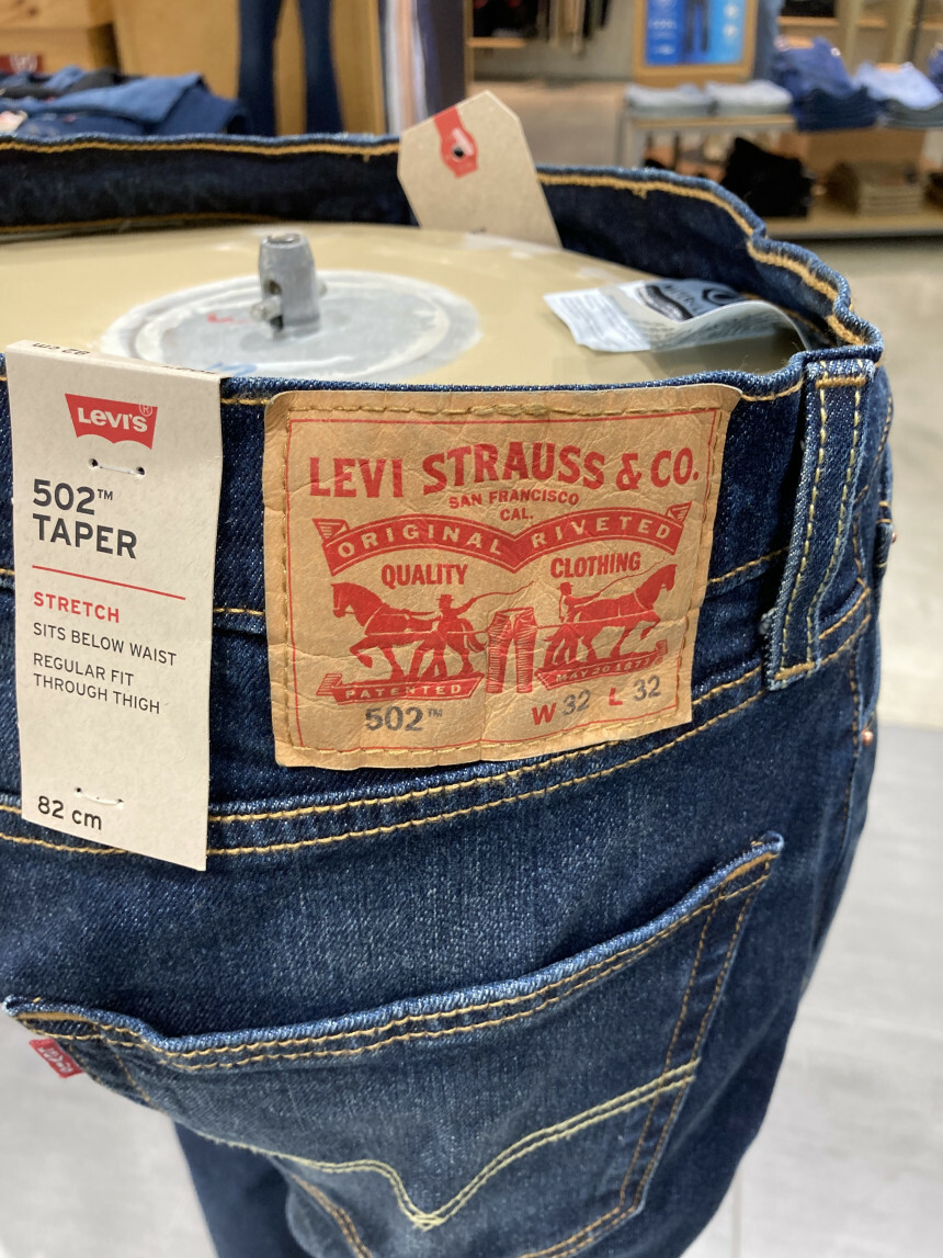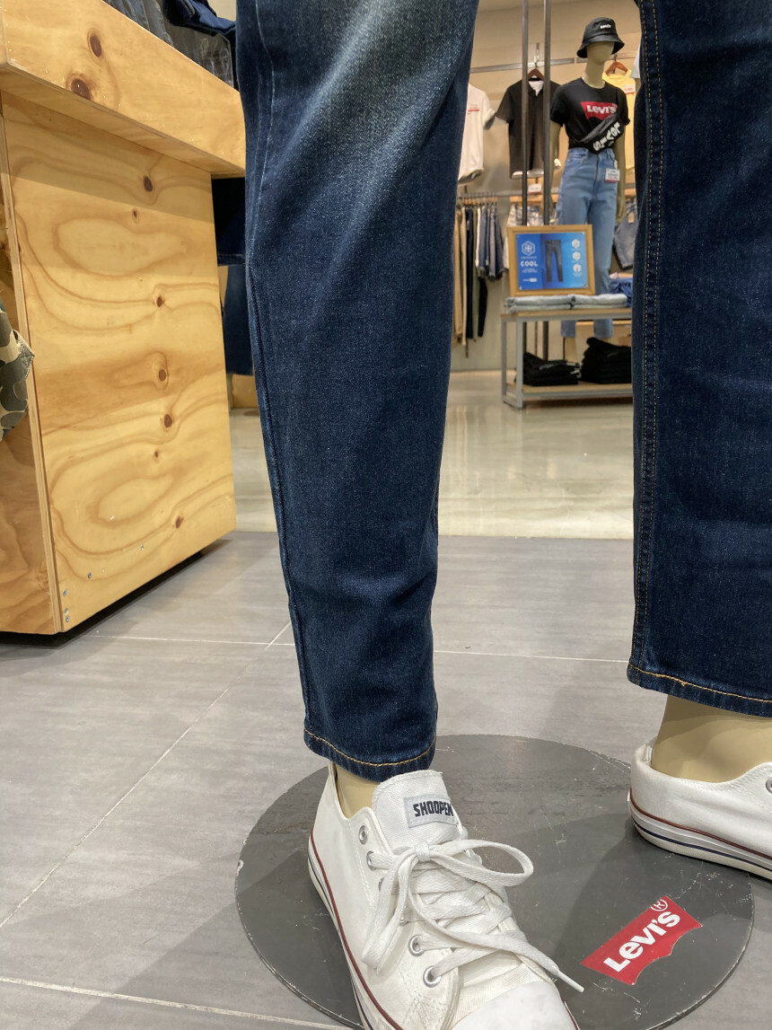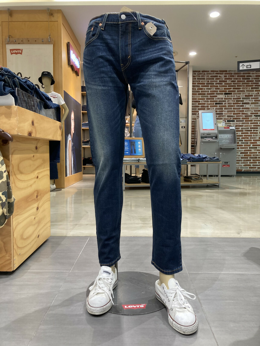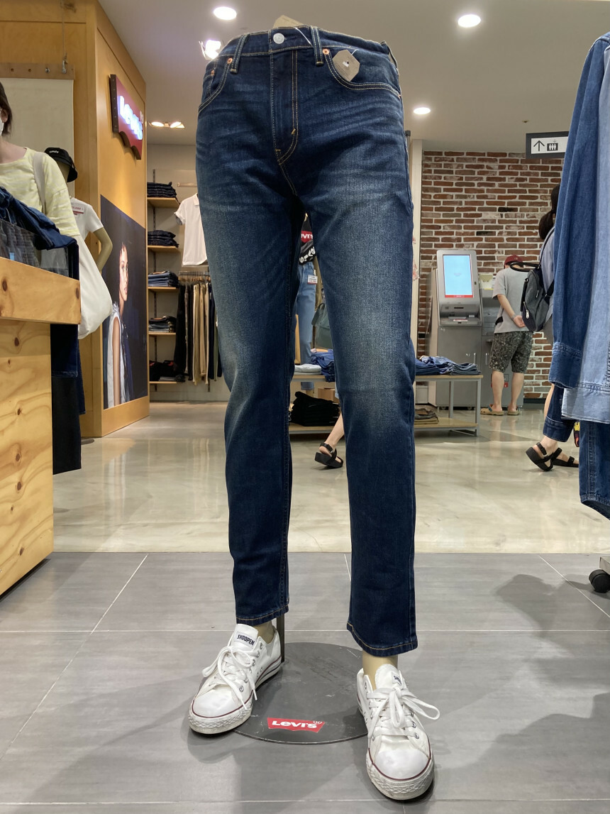 다크블루컬러에 워싱이 들어가있는 남성 502 테이퍼 청바지입니다.