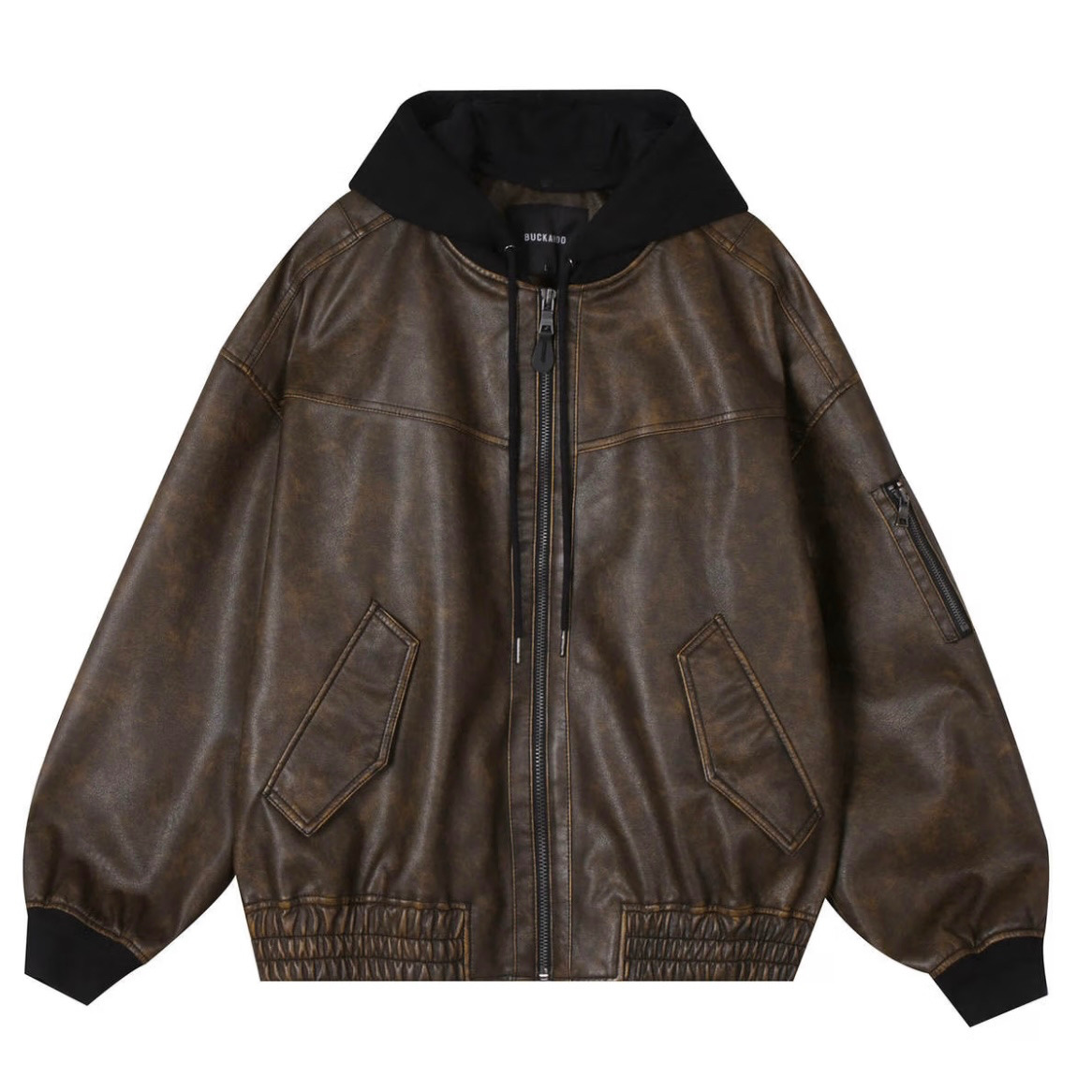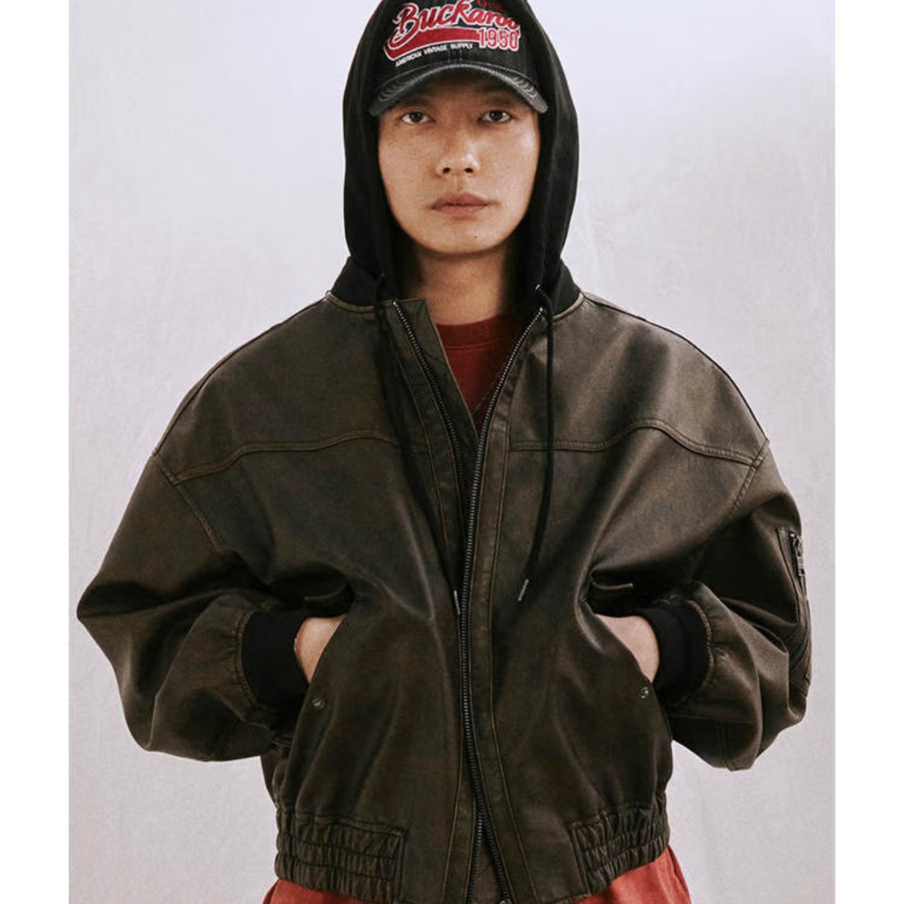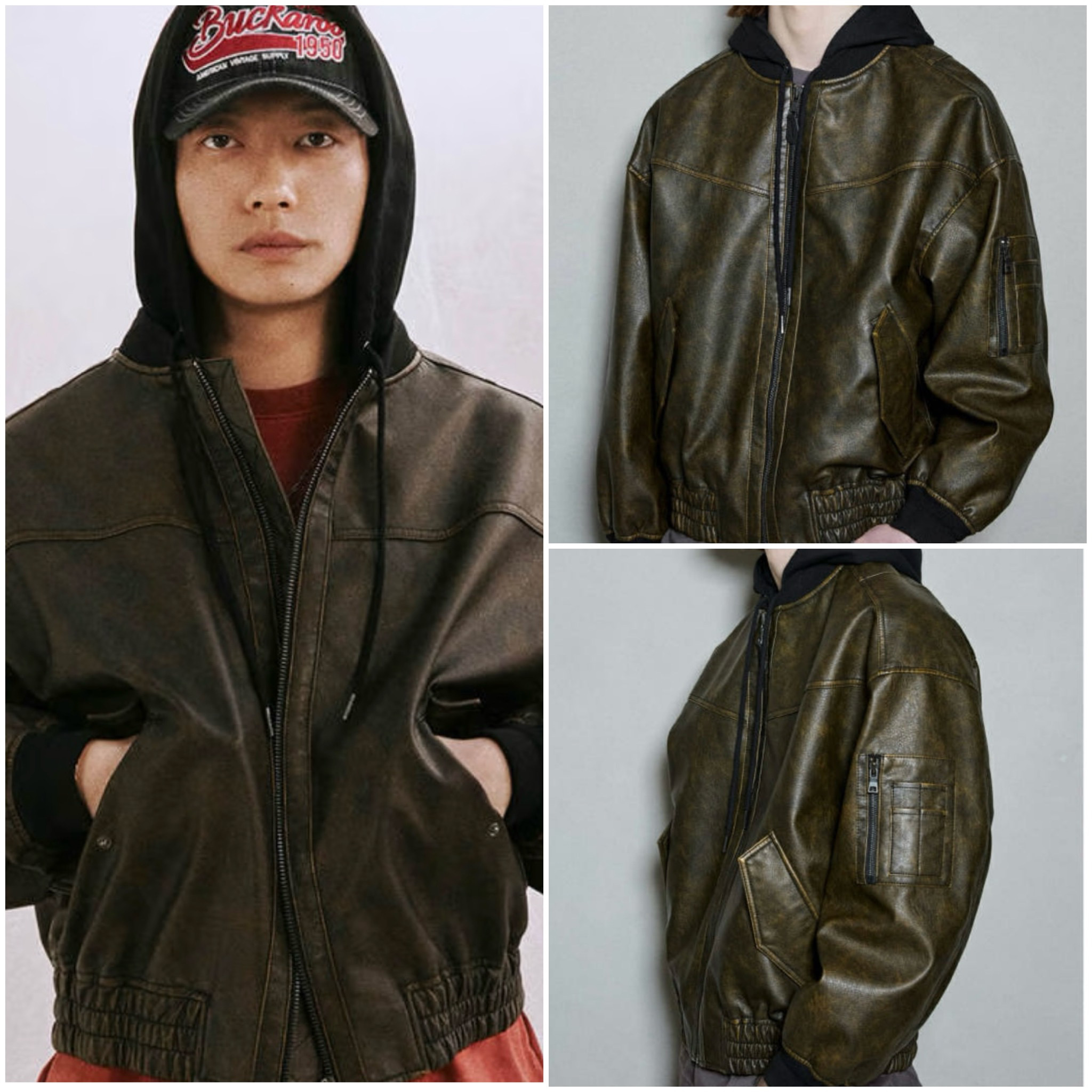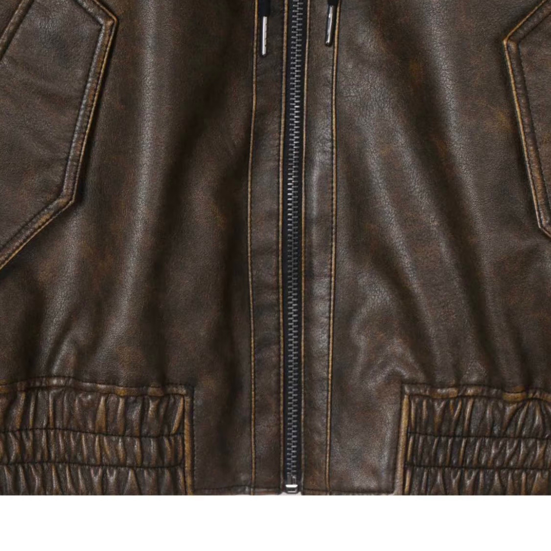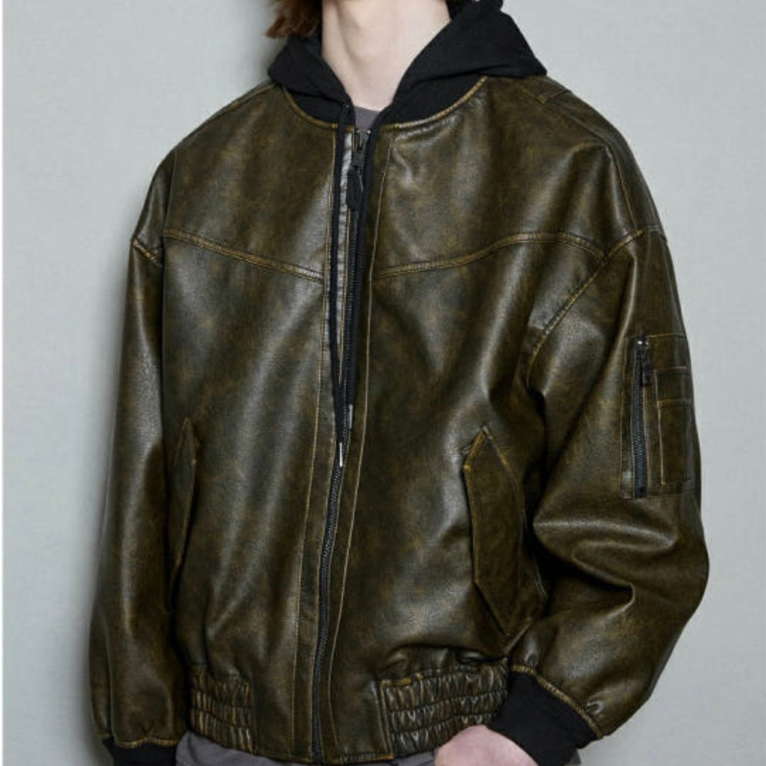 인기 남성 인조 가죽 후두탈착 항공 점퍼_US