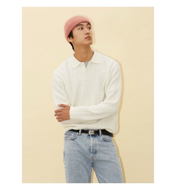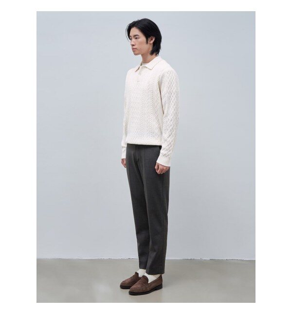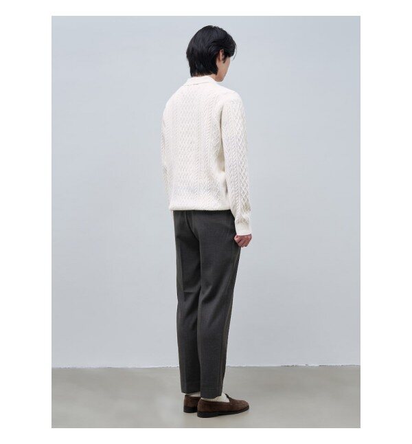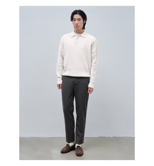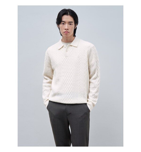 울 100% 원사로 은은하게 짜인 아란 케이블 조직의 스웨터입니다. 단추가 달리는 부분의 여밈인 플라켓에 스웨이드 포인트를 주어서 고급스러운 분위기를 보여줍니다. 클래식하고 베이직한 아이템으로 재킷이나 코트 등과 함께 매치하기 좋습니다.
