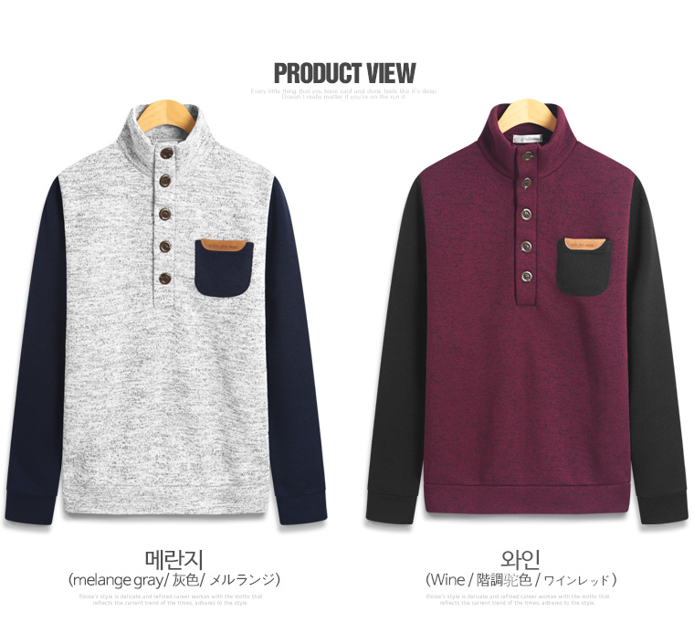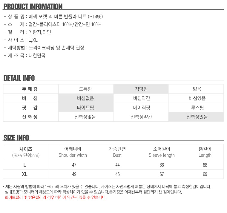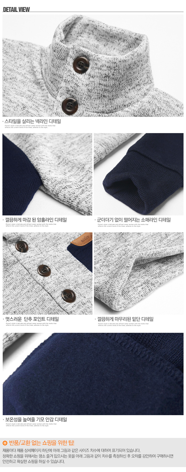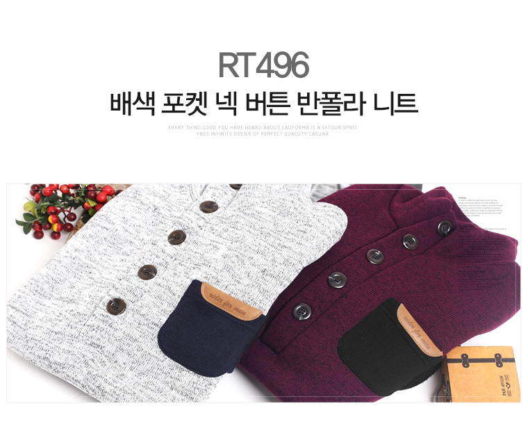 배색 포켓 넥 버튼 반폴라 니트 RT496 _P065729111