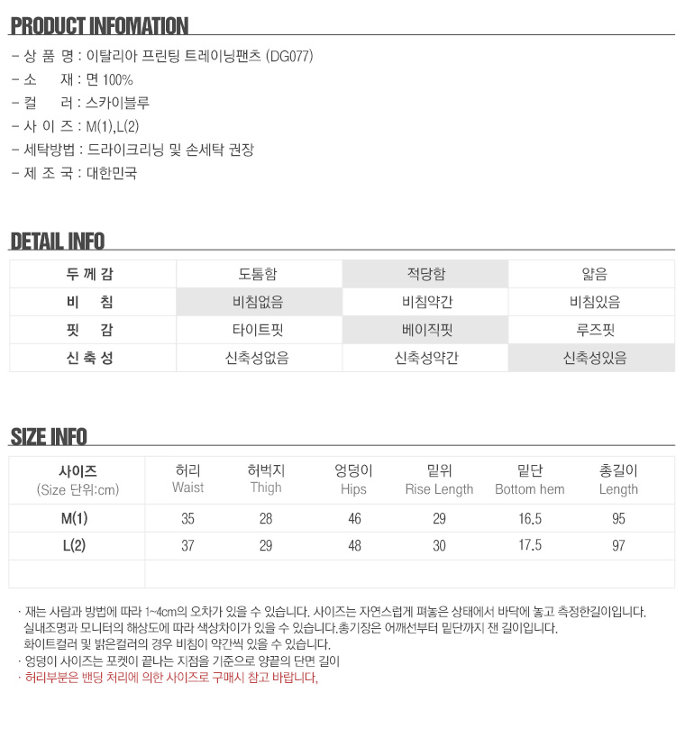 이탈리아 프린팅 트레이닝팬츠 DG077 _P064822955