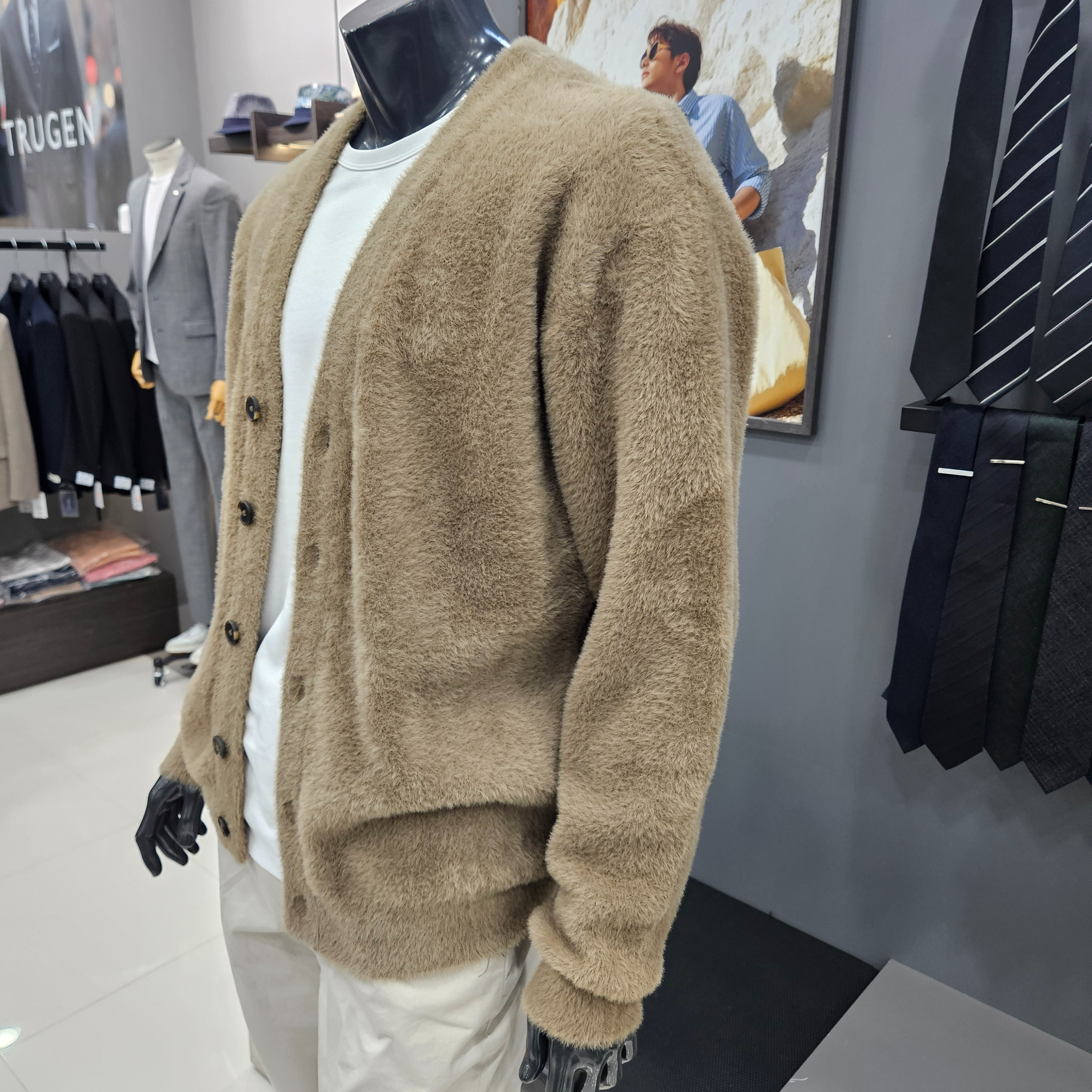 세미오버핏 가을겨울 부클퍼 가디건