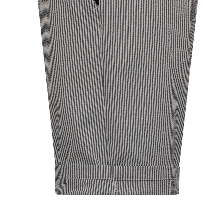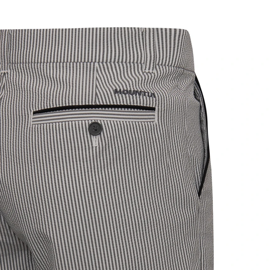 골프 스타일의 5부 팬츠 시어서커 원단으로 신축성과 착용시 청량감 제공 스트라이프 패턴으로 전반적인 일상 영역 코디에 안성맞춤