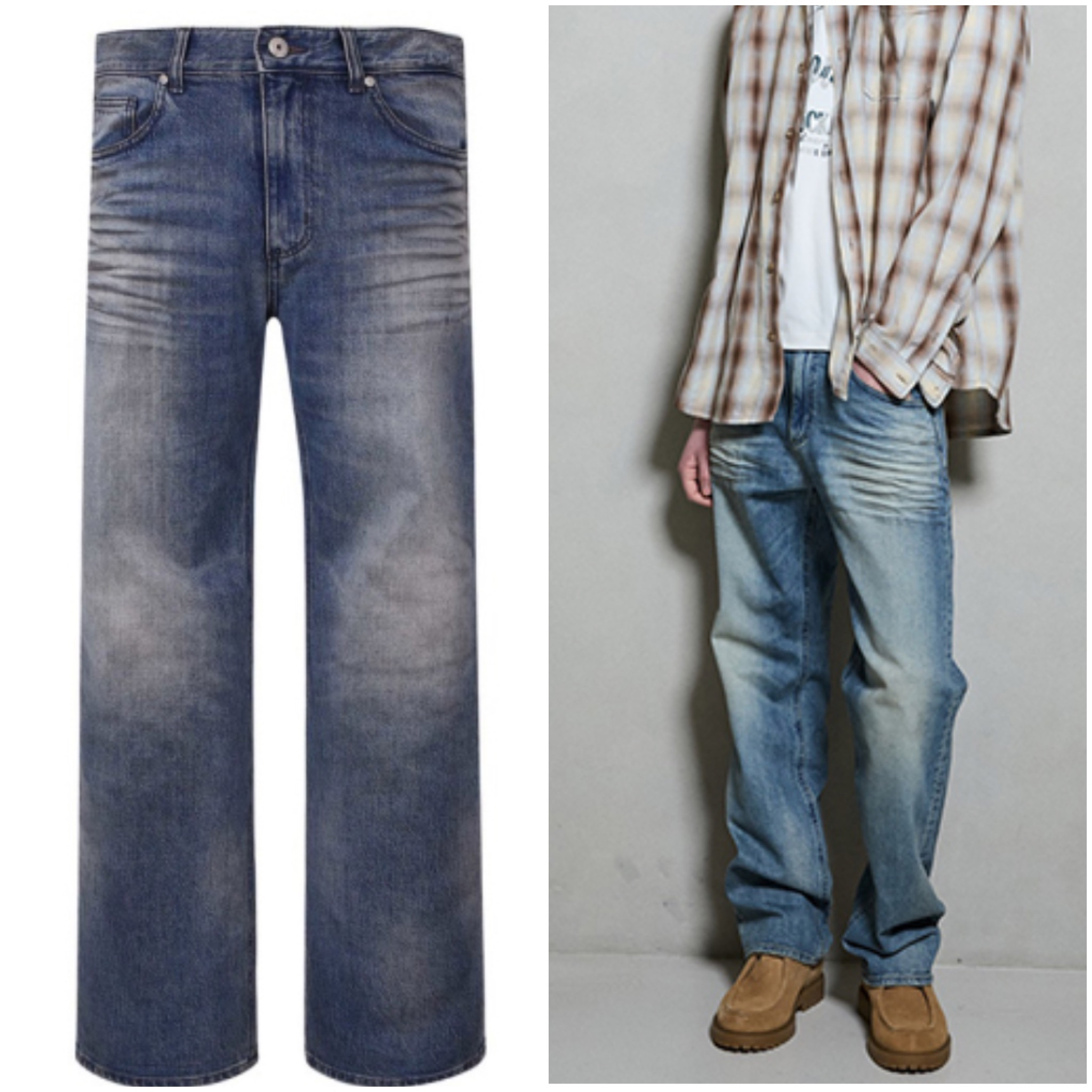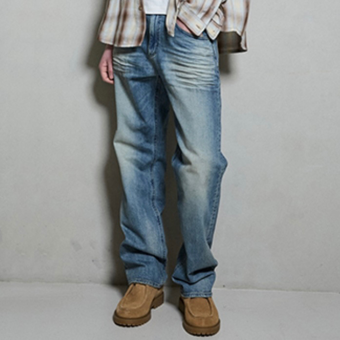 남성 프리미엄 스트레이트 구제 M톤 데님 팬츠_ US