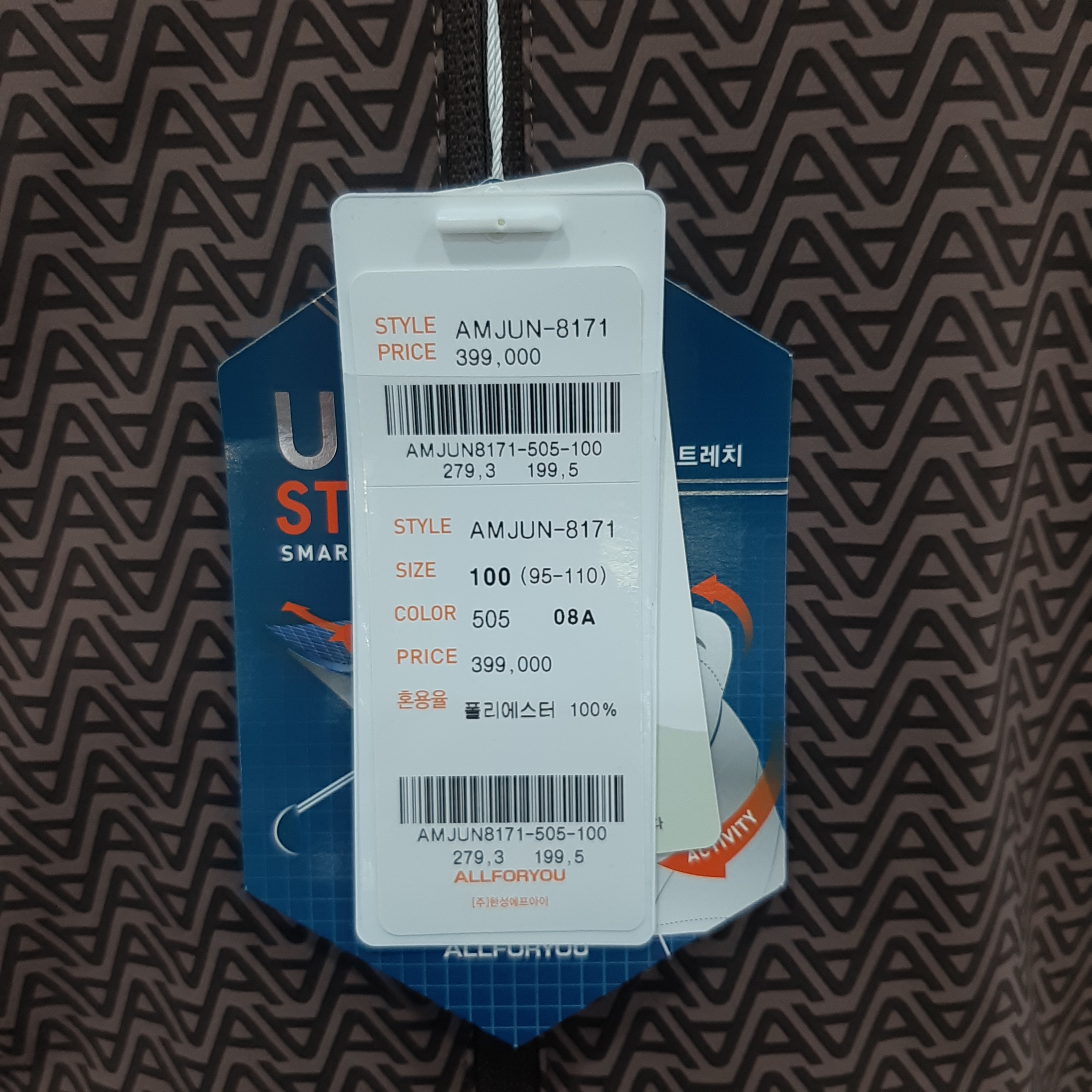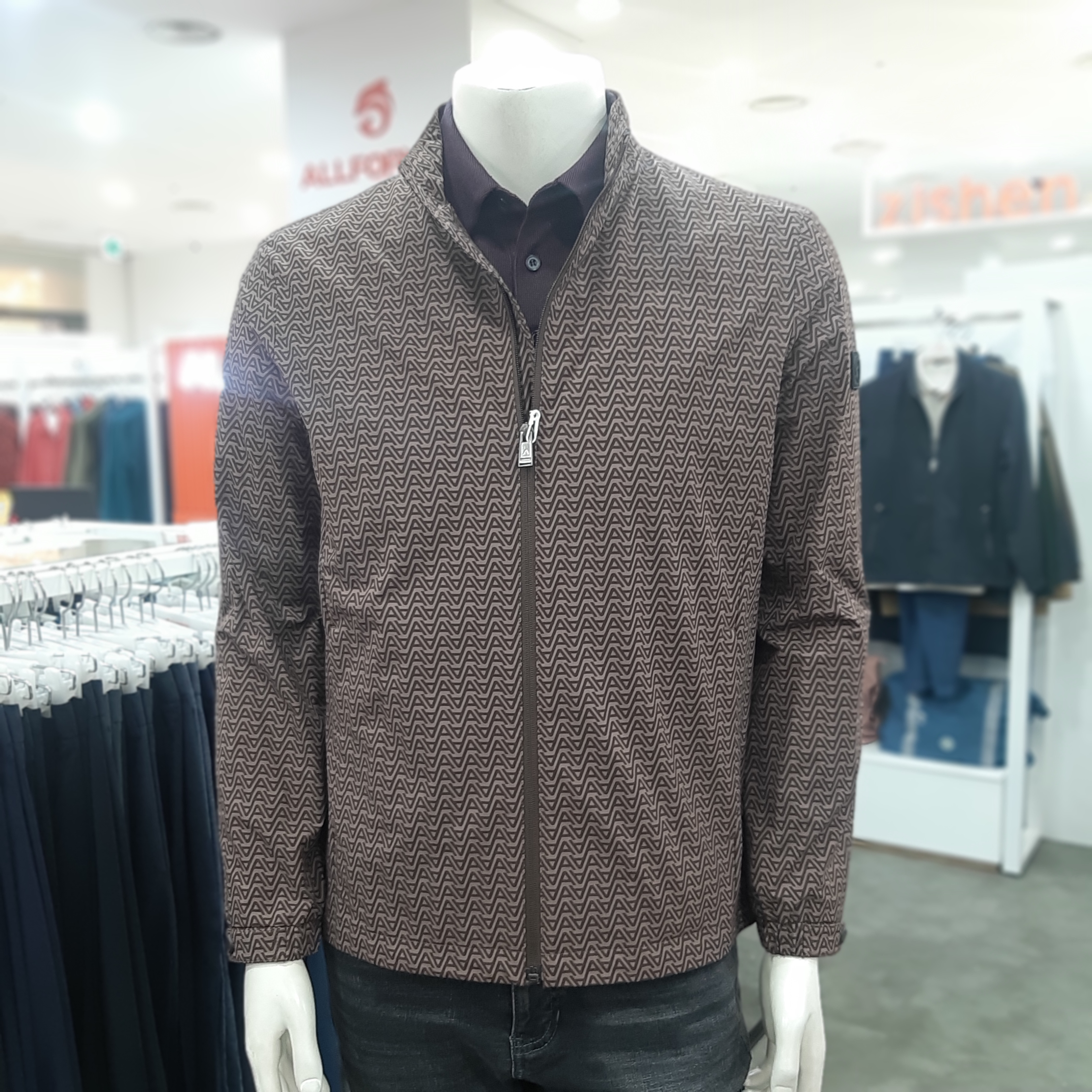 스트레치성 폴리소재의 기본점퍼로 프란트패턴이 포인트된 점퍼