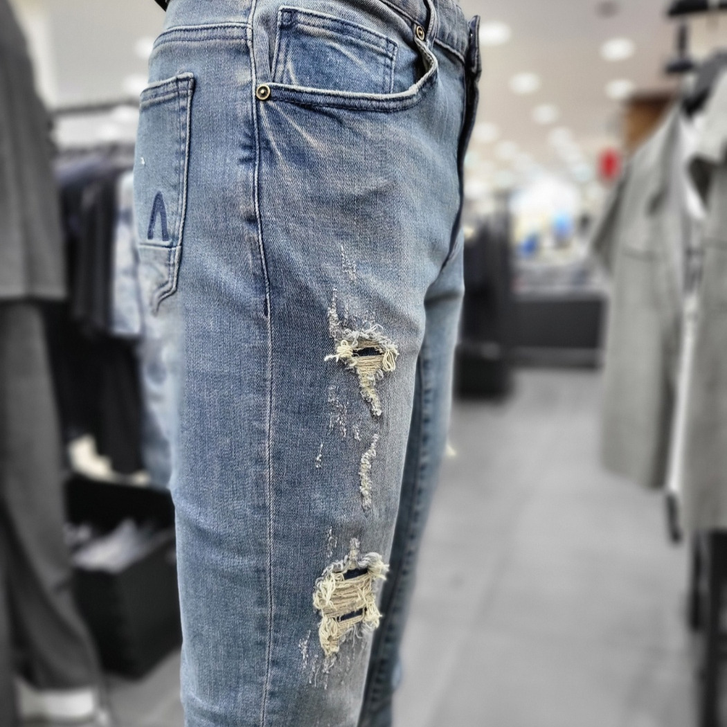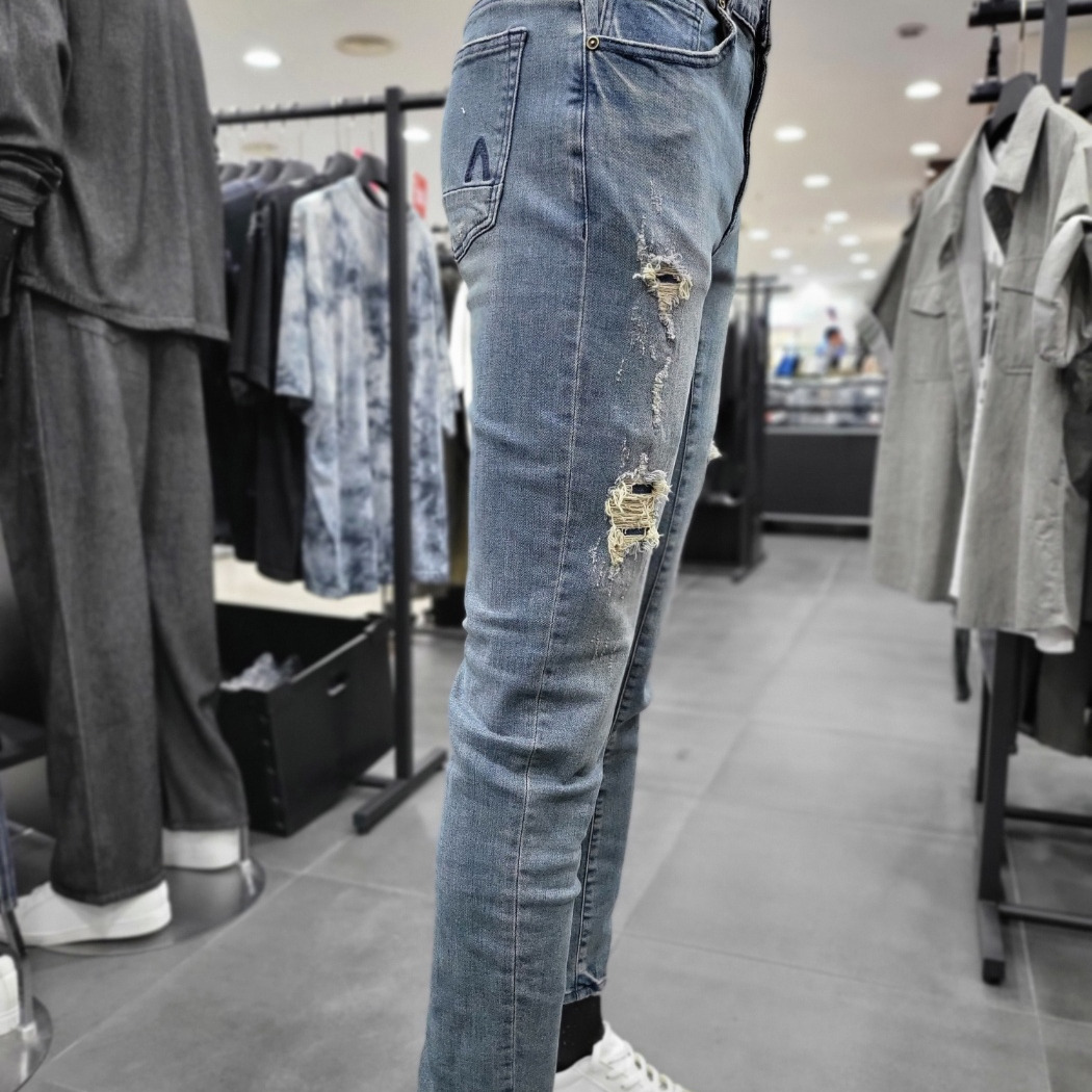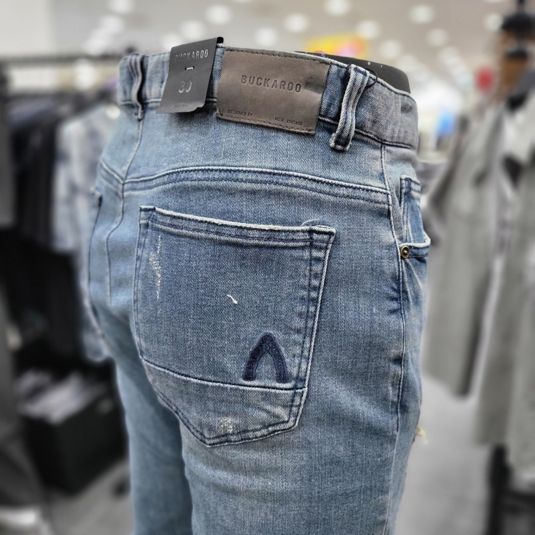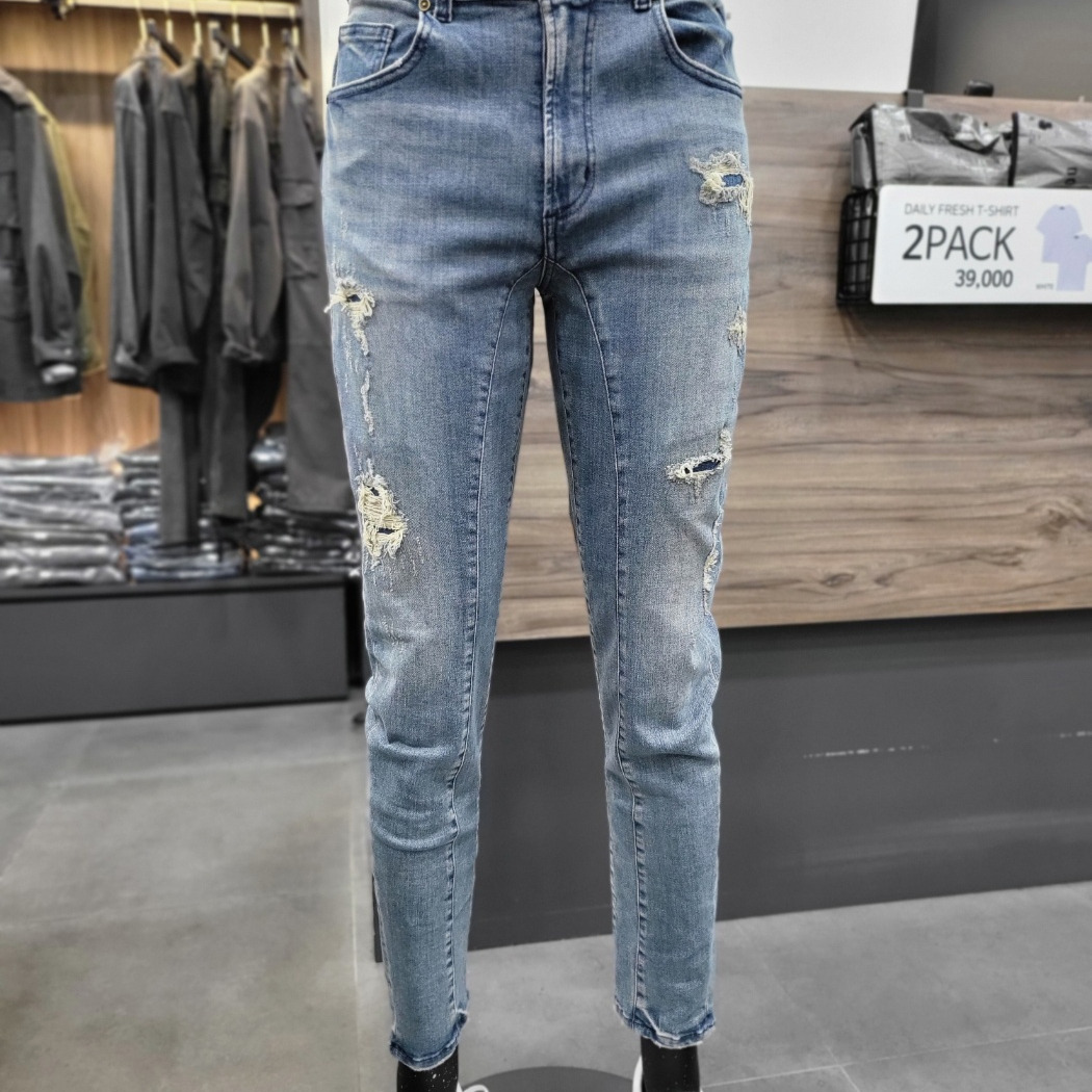 버커루의 아니코닉한 디자인과 입체패턴의 슬림배기핏의 데님팬츠로 빈티지한 워싱감이 돋보이는 남성 데님팬츠입니다.