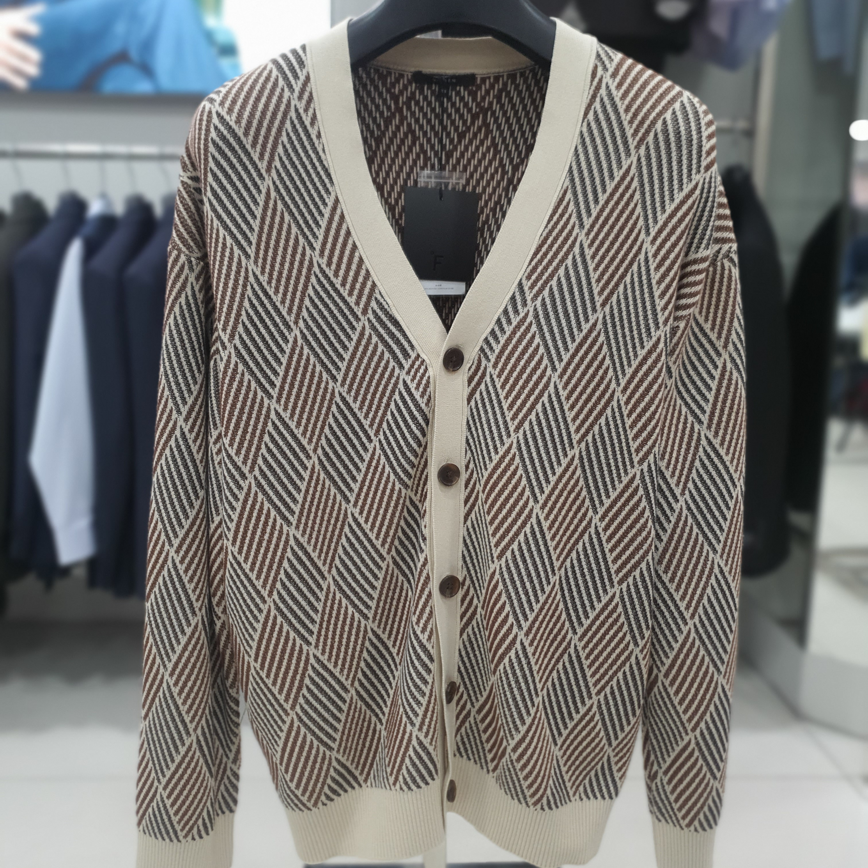 베이지 아가일 변형 패턴 가디건 FKUCA8331BE_DG