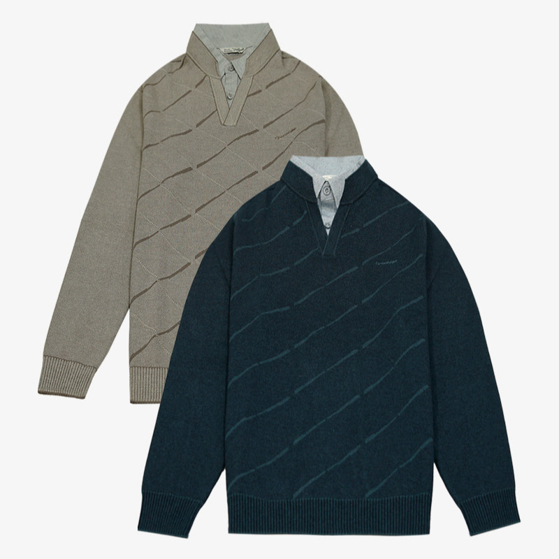 사선 조직 자카드 브이넥 레이어드 니트 CDAAAKT3353_JJ