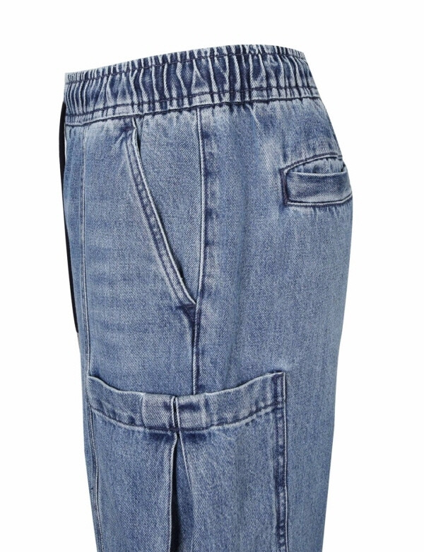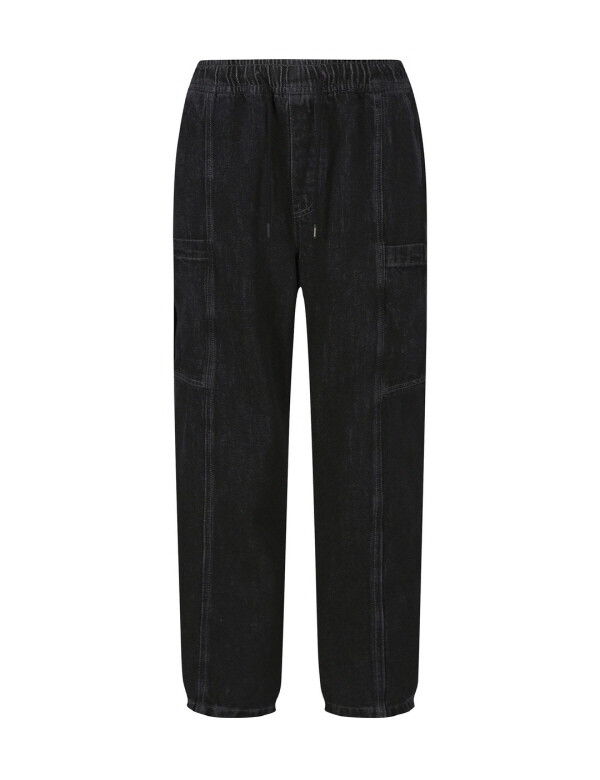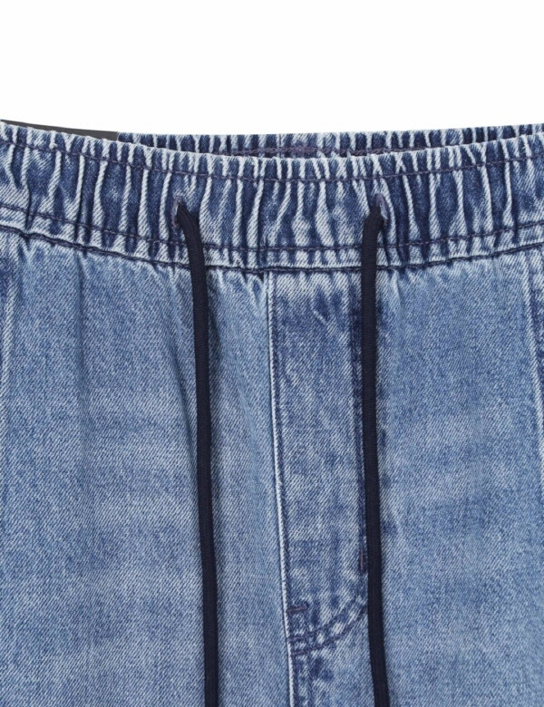 허리 이밴딩을 사용하여 활동성과 착용감이 편안하며 데일리로 스타일링 하기 유용한 데님 조거팬츠