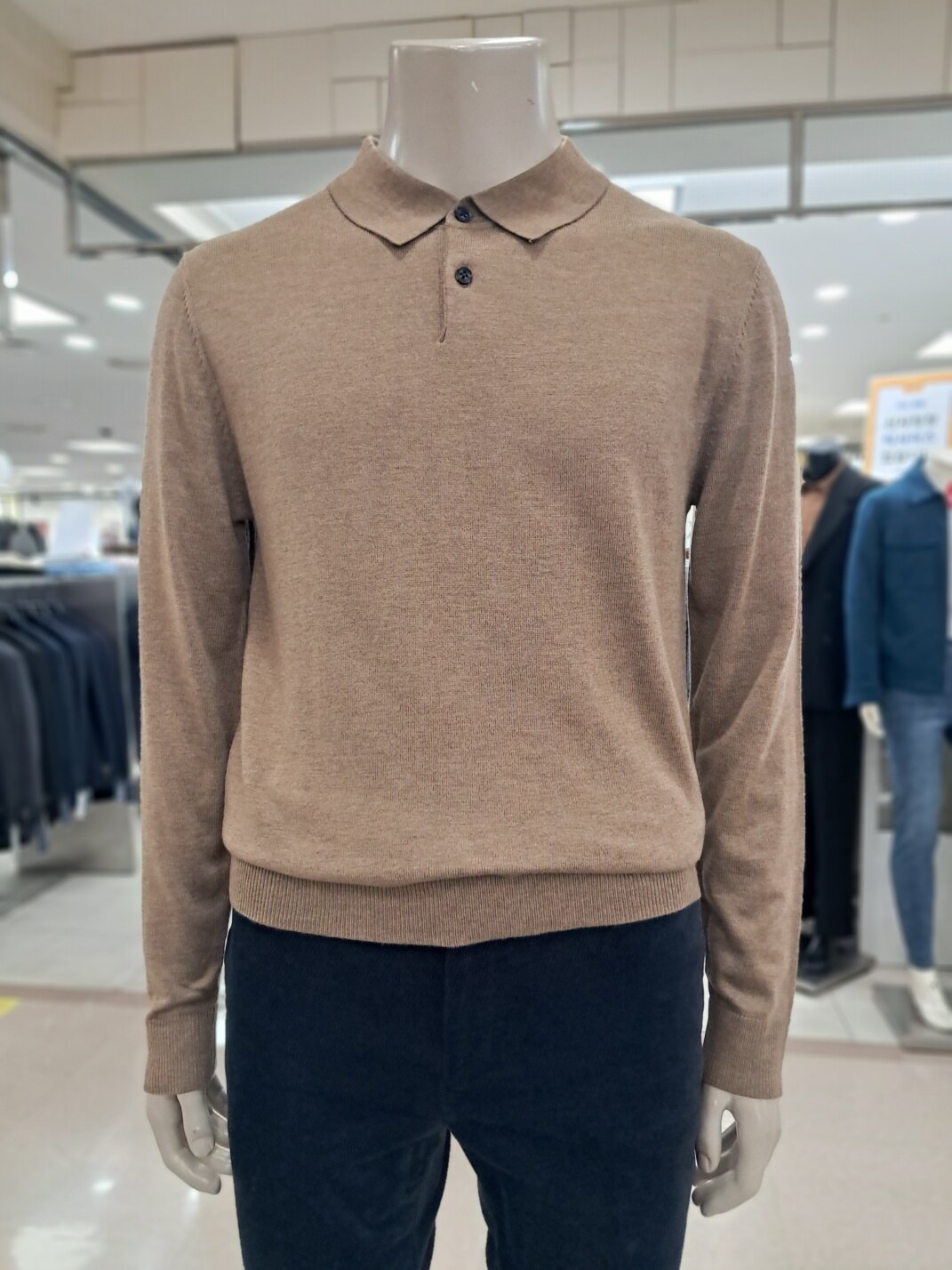 바쏘옴므 딥베이지 캐시미어혼방 기본카라 긴팔니트(WSZ3WT03ADE)