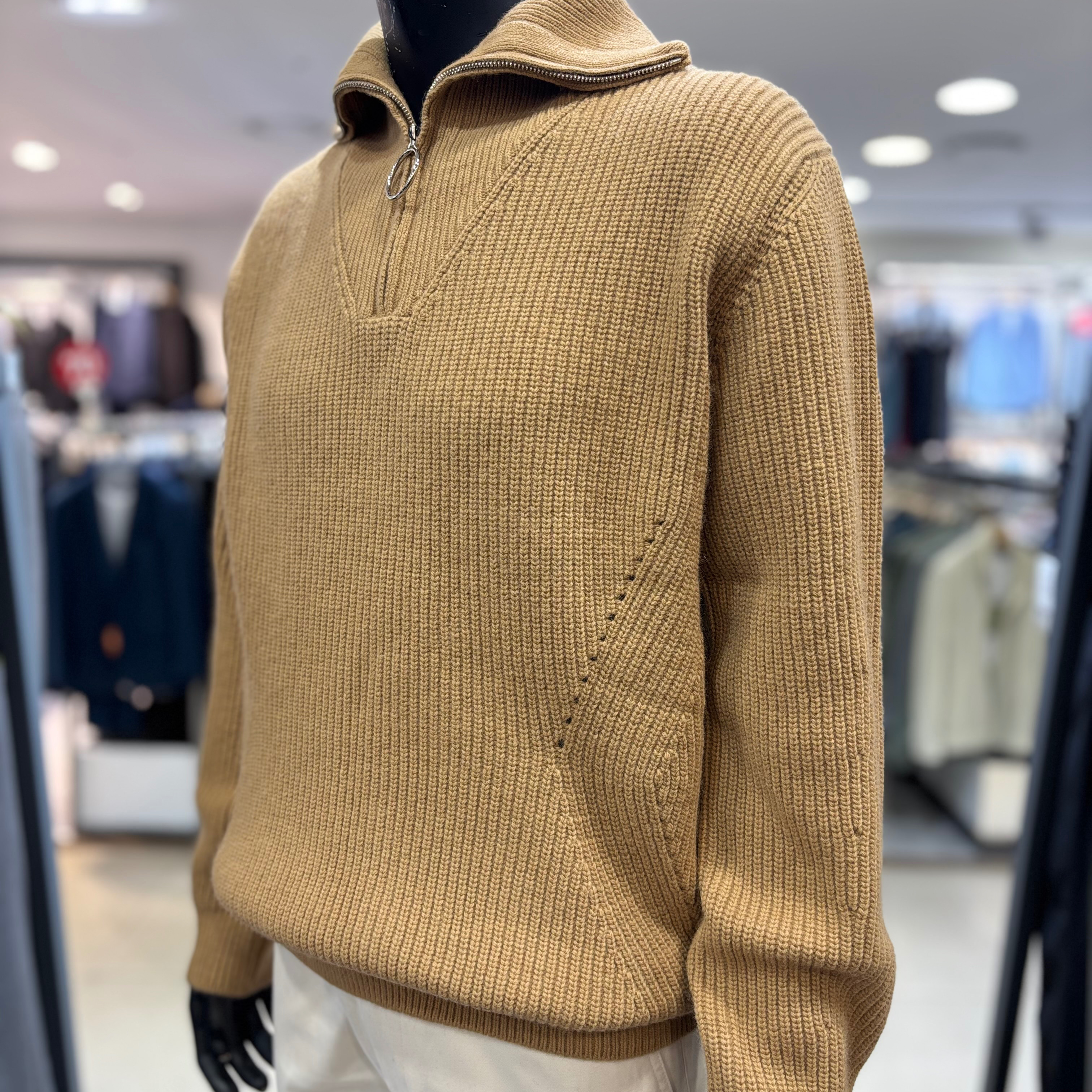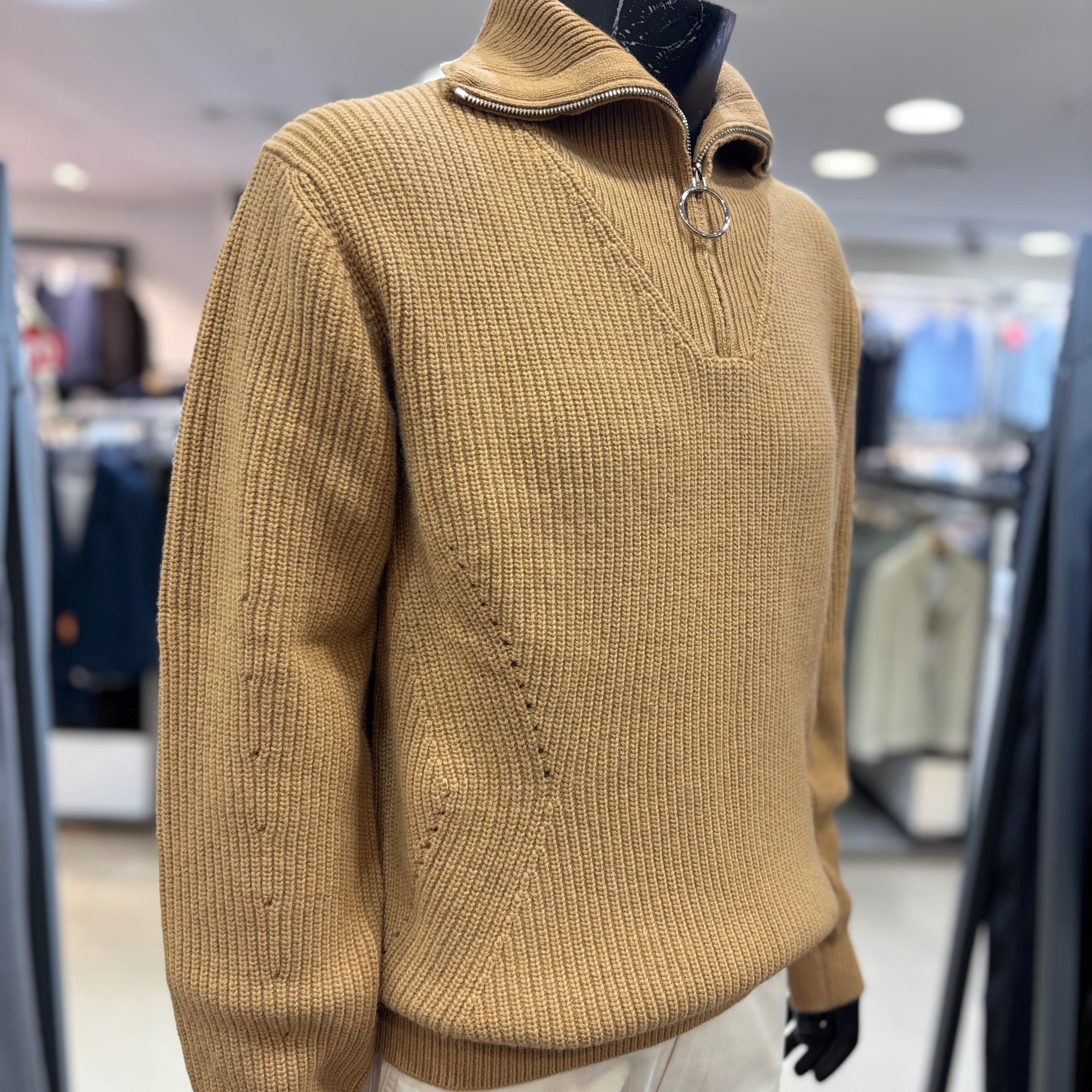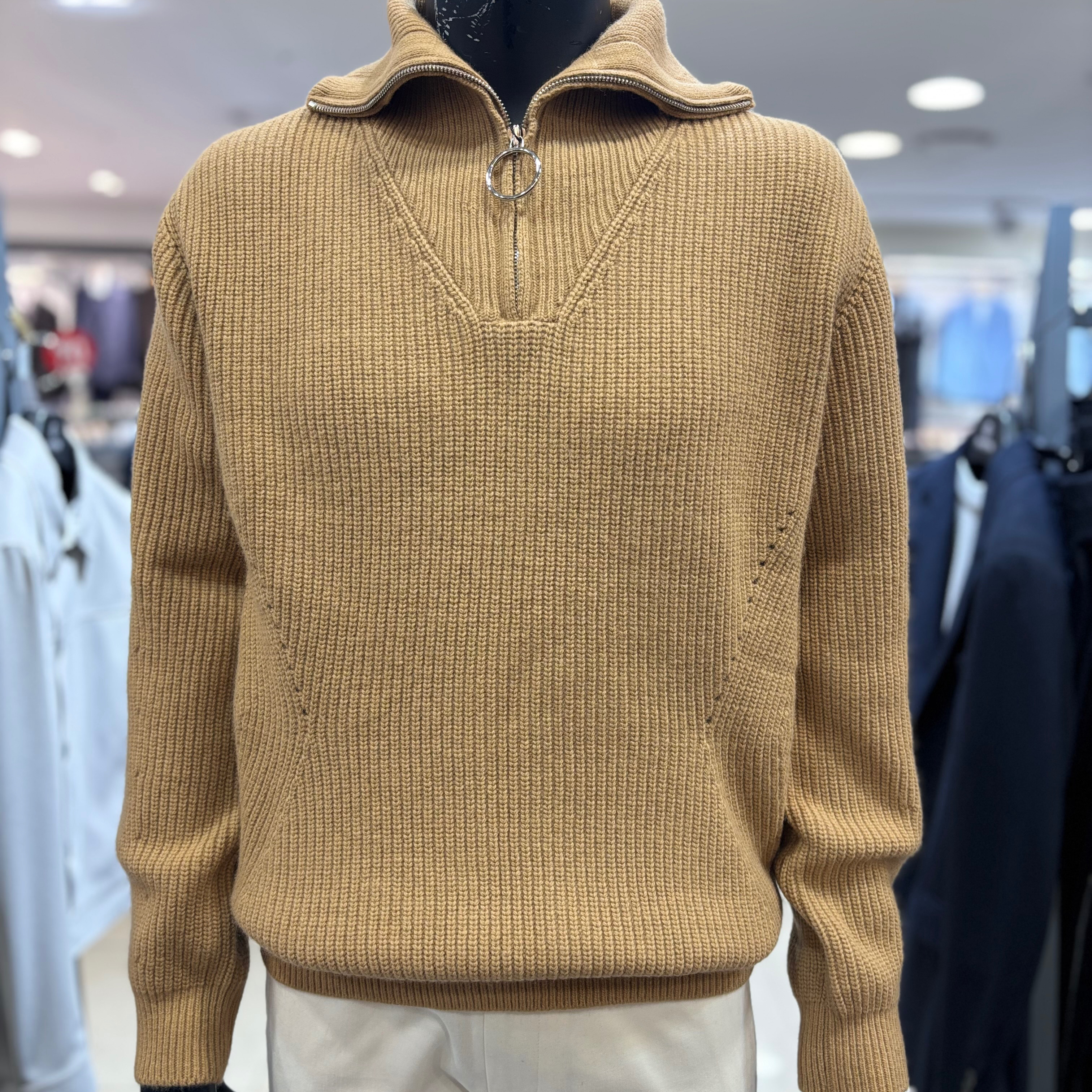 F/W 카멜 울 캐시미어 혼방 지퍼넥 니트 PDMKT65-_BP
