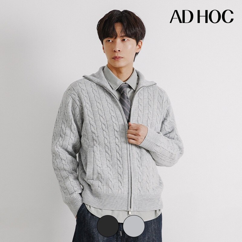 남성 하이넥 집업 케이블 니트 HA9GD81_CA