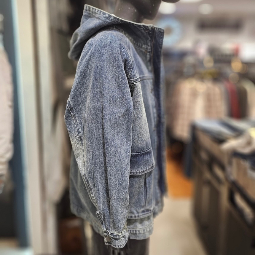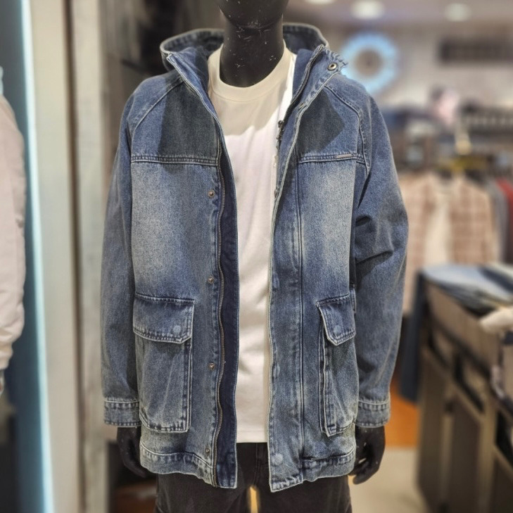 남성 아웃포케 오버핏 후두 데님 점퍼_US