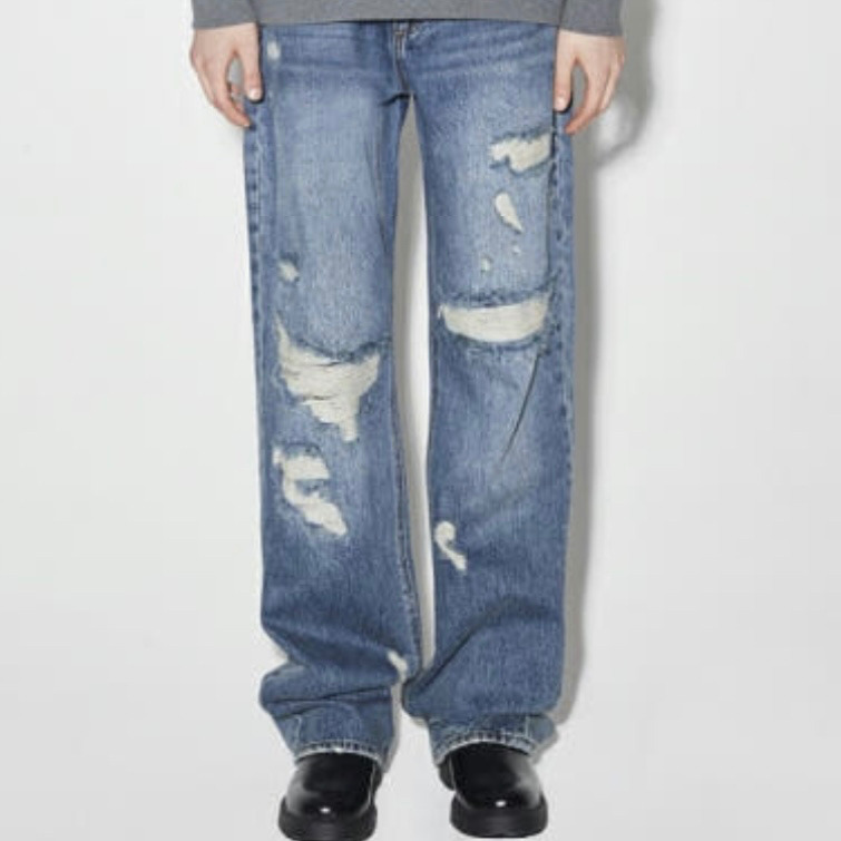 남성 구제 스트라이트 통넒은 M톤 청바지