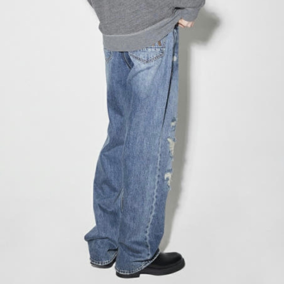 남성 구제 스트라이트 통넒은 M톤 청바지_US