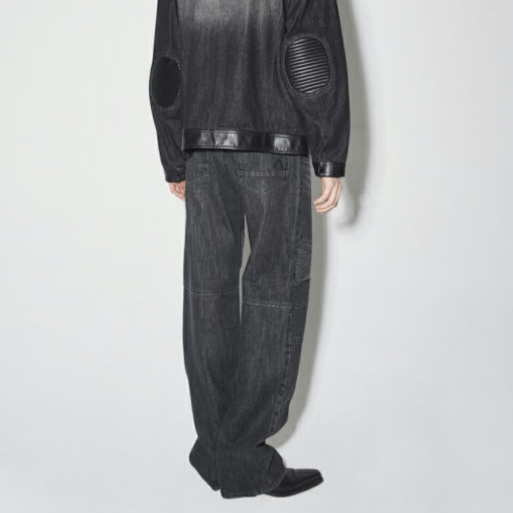 남성 무릎자수 통넒은 스트레이트 BK_US