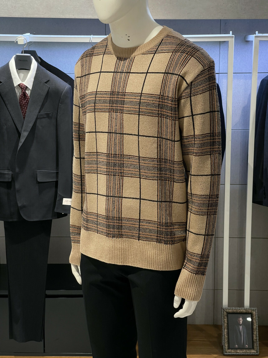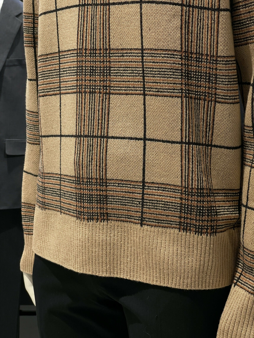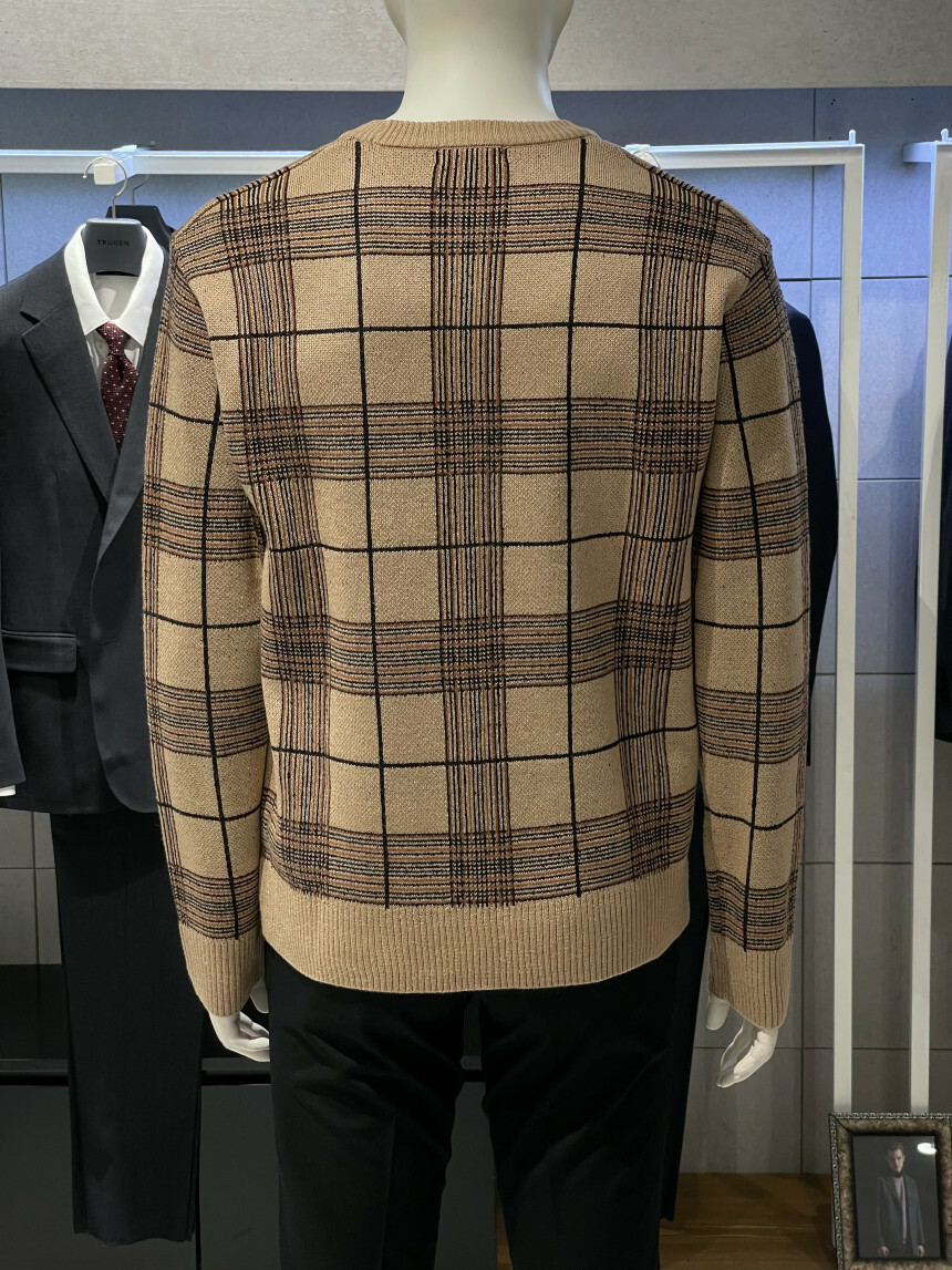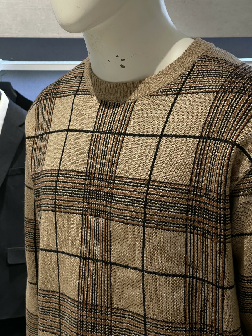 캐주얼한 체크패턴의 라운드넥 스웨터입니다.