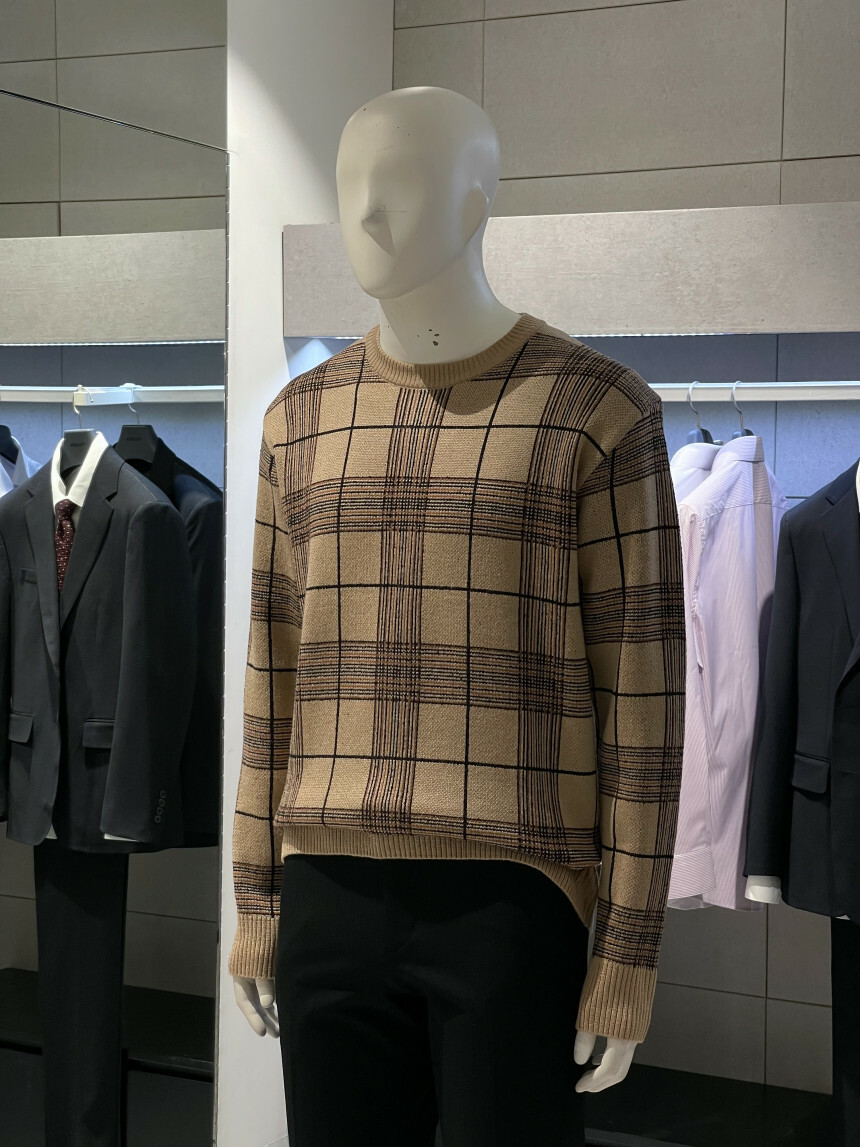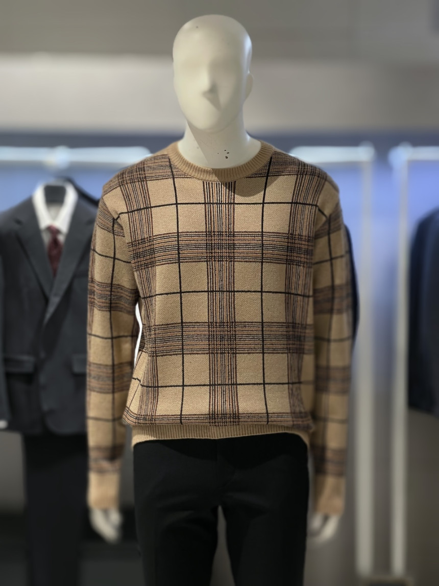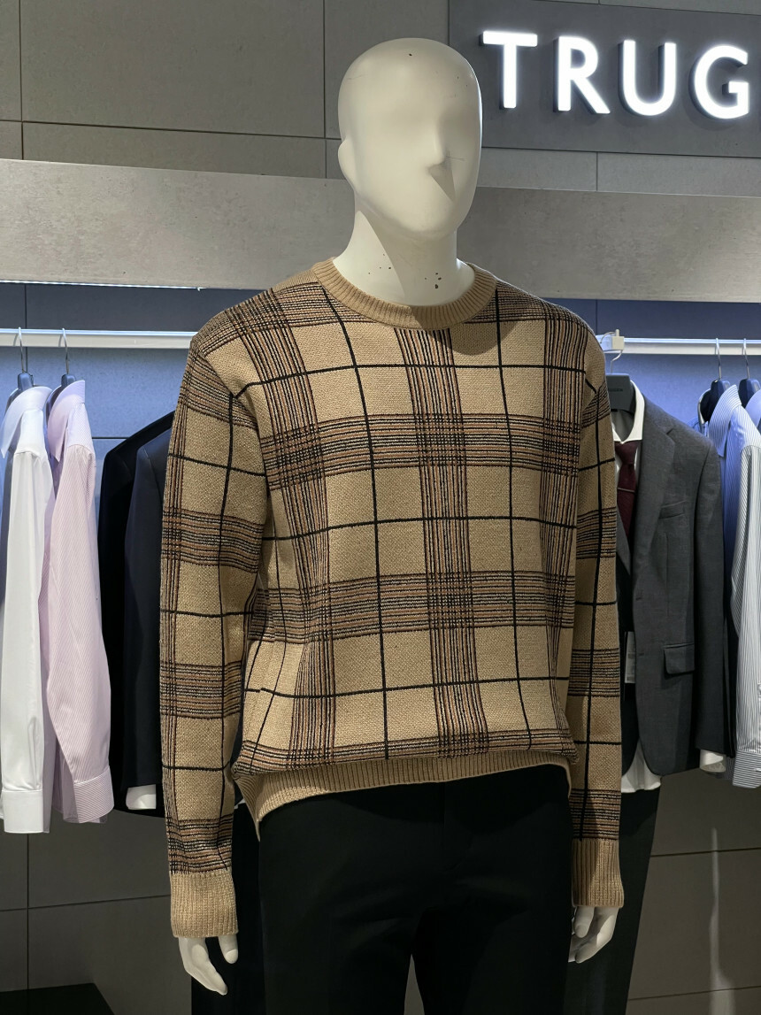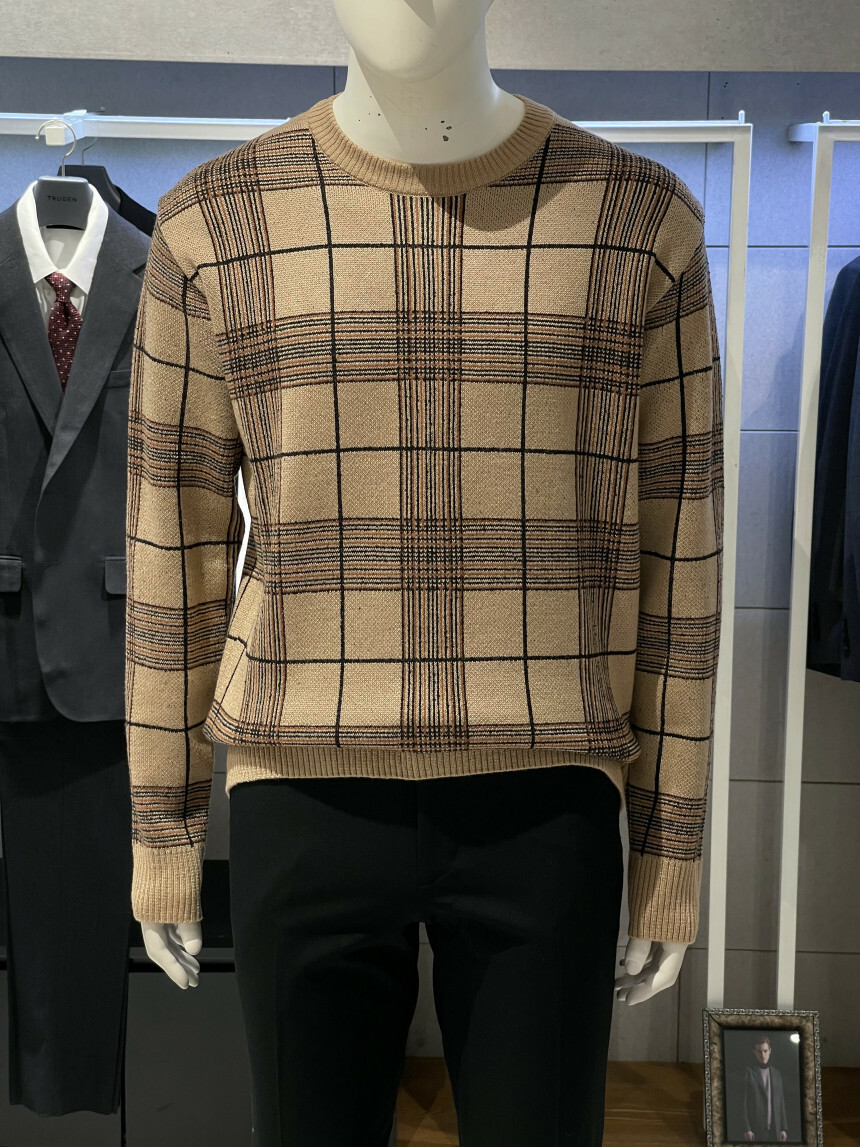 캐주얼한 체크패턴의 라운드넥 스웨터입니다.