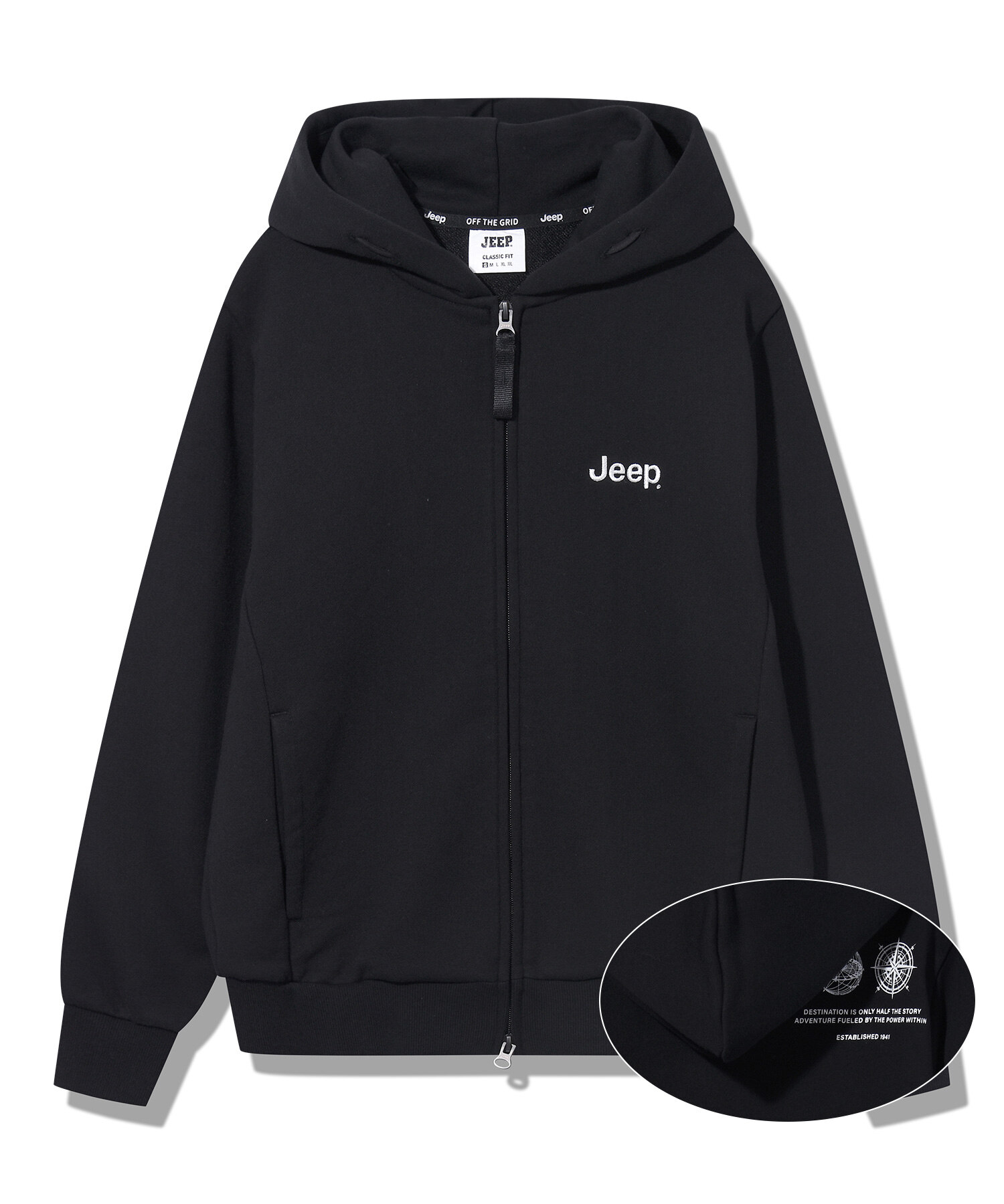 -가슴과 등판에 지프로고와 나침반 프린트로 포인트를 줌