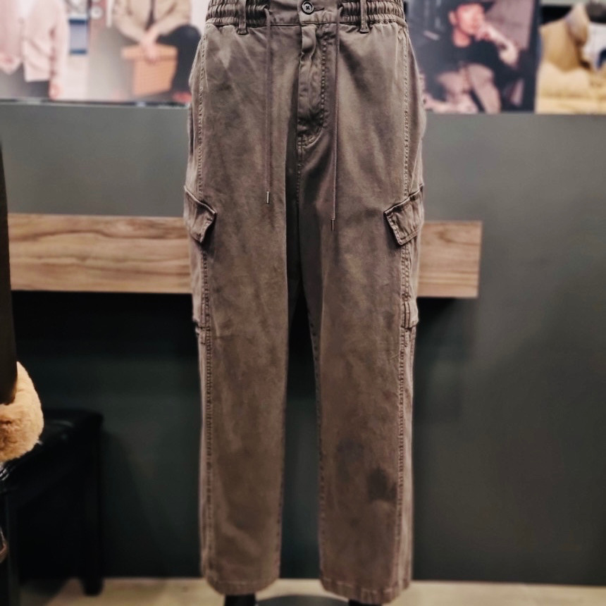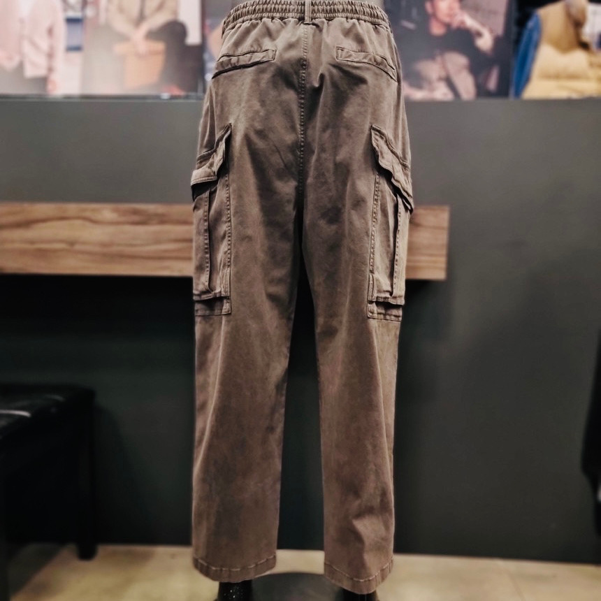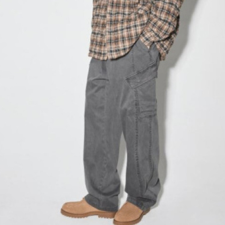 남성 사선 포켓 가먼트다잉 통큰 카고 팬츠