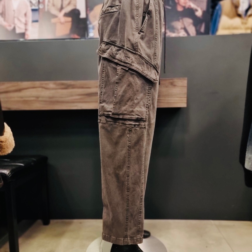 남성 사선 포켓 가먼트다잉 통큰 카고 팬츠_US
