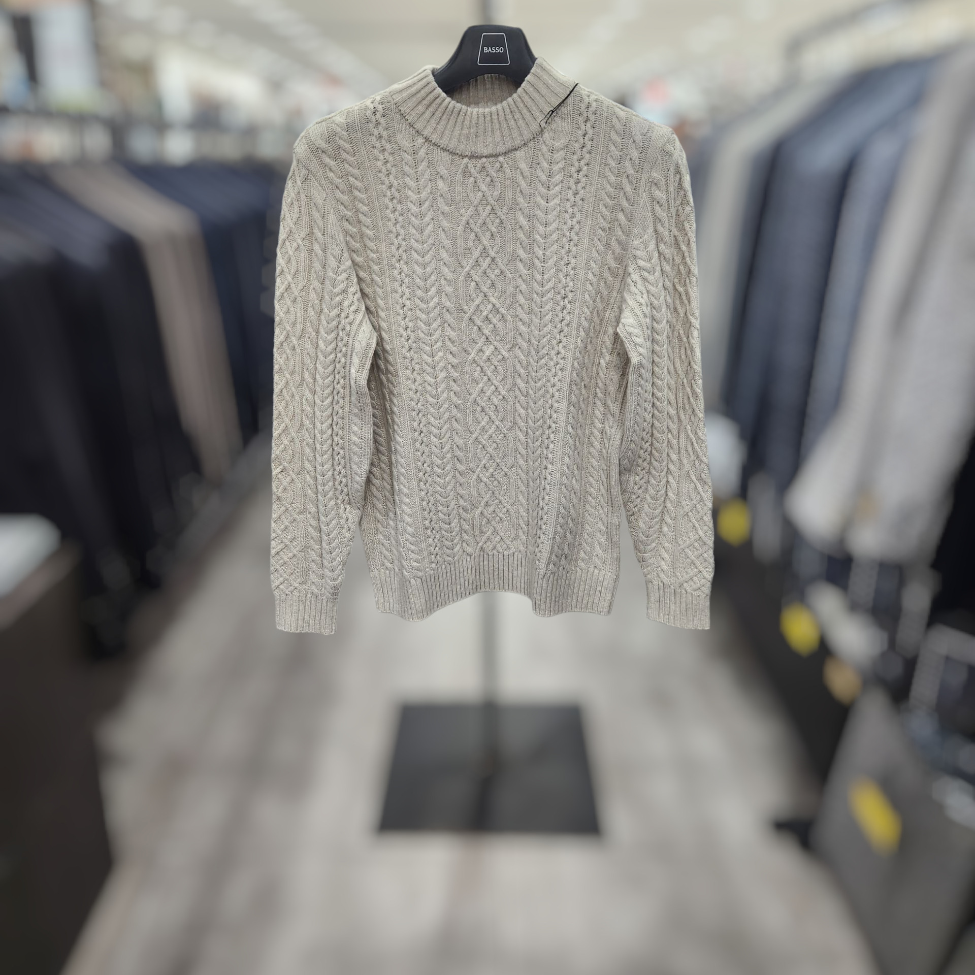 베이지 케이블 꽈배기 울혼방 반폴라 터틀넥 니트 WSY3WN08ABG