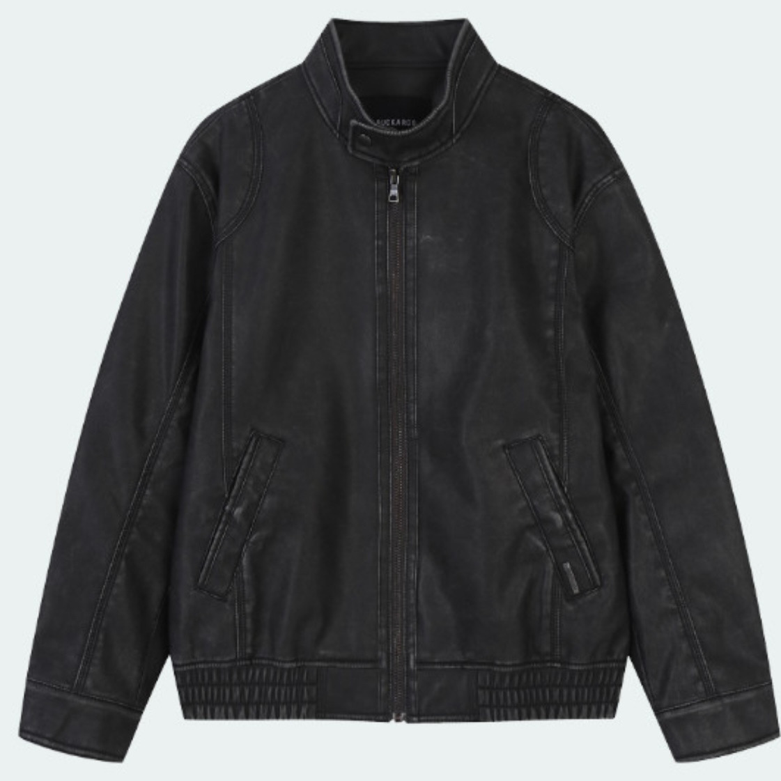 인기 남성 스탠드 카라 인조 가죽 자켓_US