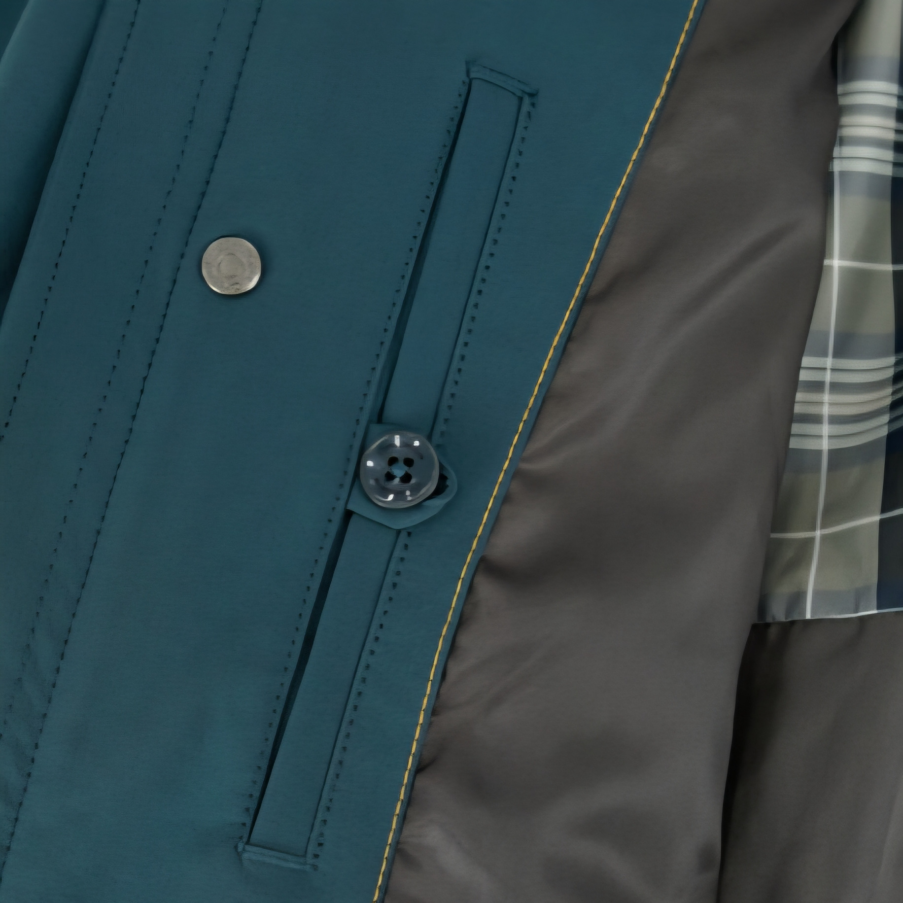 부드러운 터치감과 신축성이 우수하여 활동성이 용이합니다. 고급스러운 변형 자파리 형태로 일상이나 격식 있는 자리 모두 활용성이 높습니다. 내부 체크 프린트로 배색을 넣어 트렌디함을 강조했습니다.