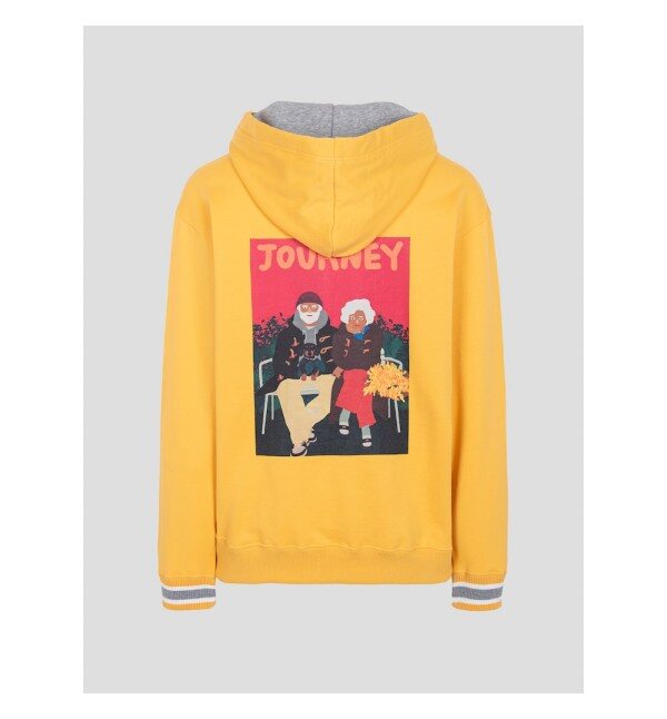 프린트 베이커리 컬래버레이션 후드 스웨트셔츠입니다. 그레타 프리든 작가 특유의 그림체로 풀어낸 다양한 동물 캐릭터들을 여행이라는 테마에 위트 있게 담아냈습니다. 테마를 상징하는 전면의 레터링과 뒷면의 큰 프린트가 잘 어우러져 캐주얼한 무드를 살려줍니다. 손목의 티핑 디테일로 포인트를 더했으며 집업 스타일이라 입고 벗기에도 편합니다.