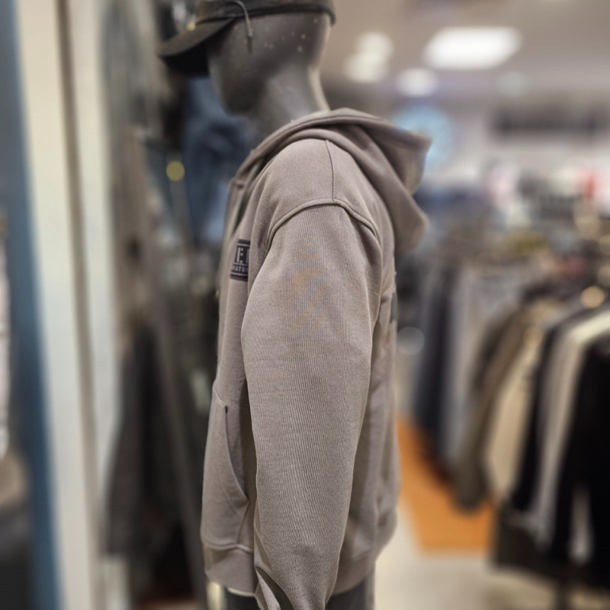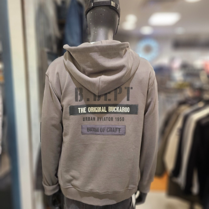 *버커루만의 밀리터리 무드를 살린 아트웍을 다양한 기법으로 활용해 이너 및 아우터로 착용 가능한 후드 집업 - 60/40 C/P 3단쭈리 사용 - BLACK, D/KHAKI 컬러로 데일리 및 포인트 컬러로 착용 가능 - 밀리터리 무드 아트웍 작업 / 트윌 아플리케, 조직 TAPE 아플리케 - 루즈핏