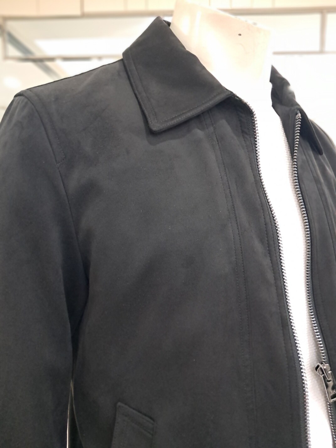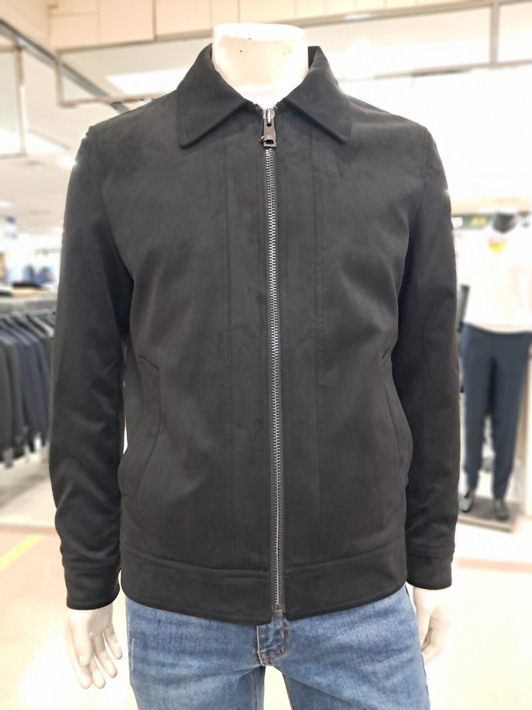 블랙색상의 비건레더 점퍼로 부드러움과 깔끔하게 떨어진 유행타지않는 기본스타일에 비건 블루종 점퍼입니다. 시보리부분과과 , 소매부분의 디테일이 돋보이며 스타일리쉬한 디자인의 경쾌하고, 세련되게 입으실수있는 실용적인 디자인 입니다. 정사이즈 핏으로 평소 입으시는 대로입으시길 권장드립니다.