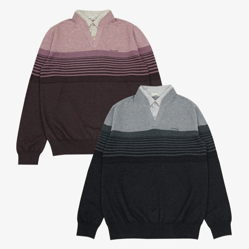 세련된 투톤 배색이 돋보이는 레이어드 니트입니다. 셔츠 카라 레이어드 디자인으로 단정하면서도 감각적인 스타일을 연출할 수 있으며, 스트라이프 디테일이 모던한 포인트를 더합니다. 부드러운 레이온 혼방 원사를 사용해 편안한 착용감을 제공하며, 캐주얼은 물론 비즈니스 캐주얼룩까지 폭넓게 소화 할 수 있는 아이템입니다. 단품으로도 이너로도 스타일리시 하게 매치 가능한 활용도 높은 니트웨어입니다.