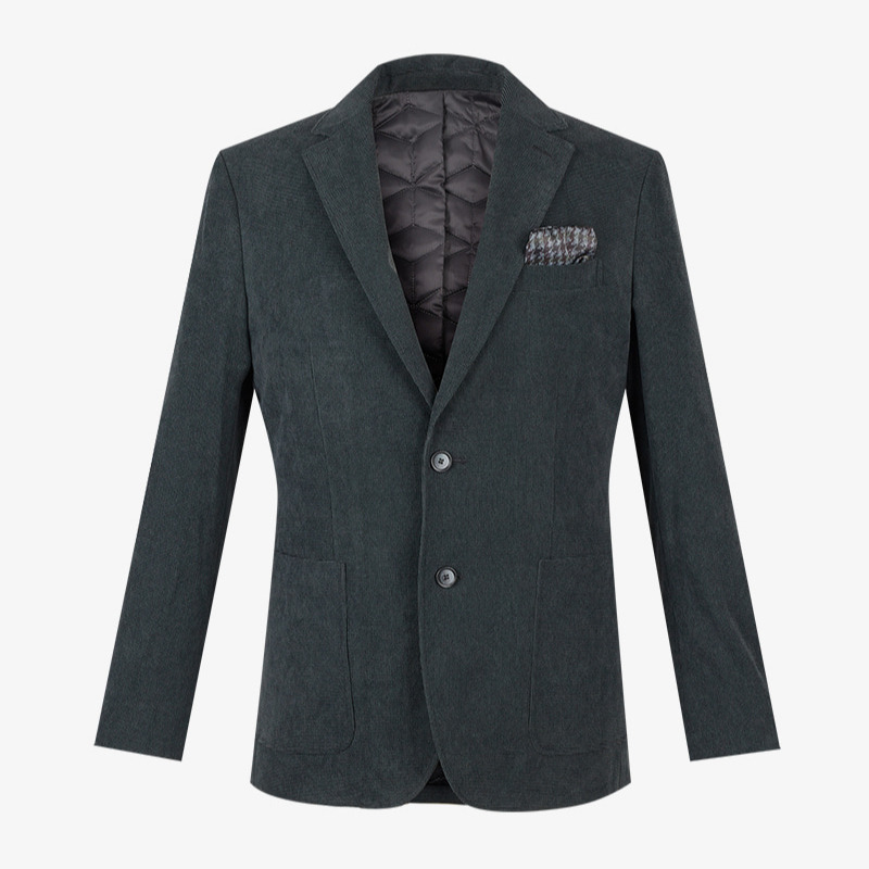 폴리스판 코듀로이 자켓으로 고급스러운 광택감과 부드러운 터치감이 매우 우수한 상품이며, 내부에 퀼팅 처리하여 초겨울까지 착용 가능합니다. 아웃 포켓 처리하여 보다 트렌디하게 연출 가능합니다.