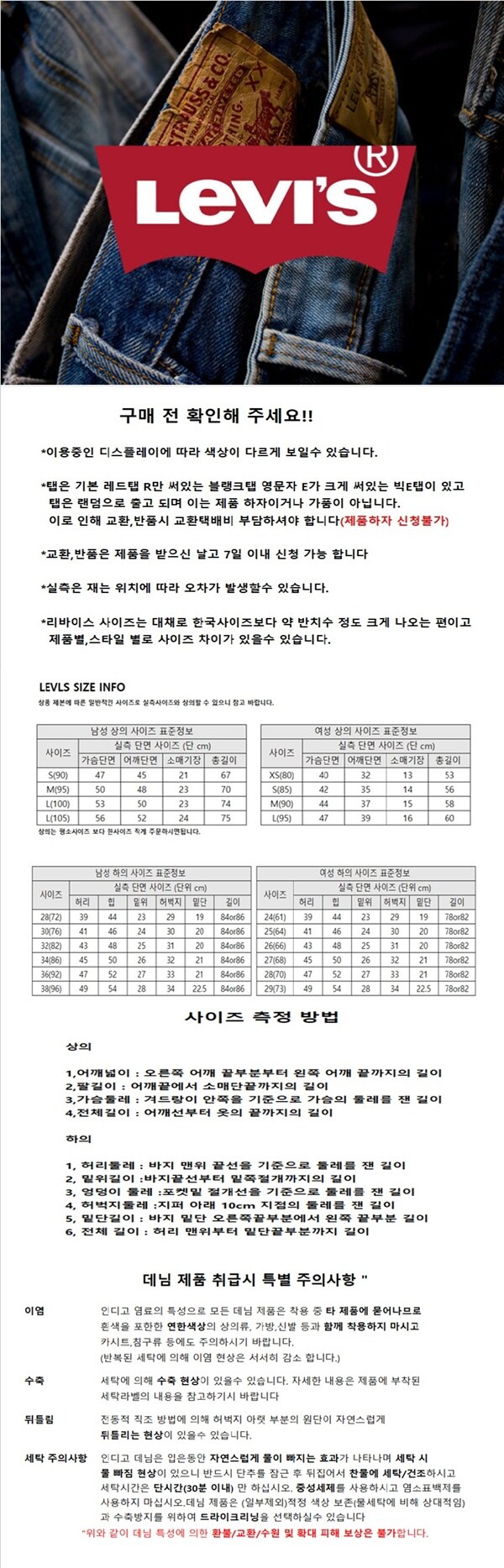 | 반품 주소 | 경북 경주시 천북면 산업로 4930 모다아울렛 리바이스 | ||