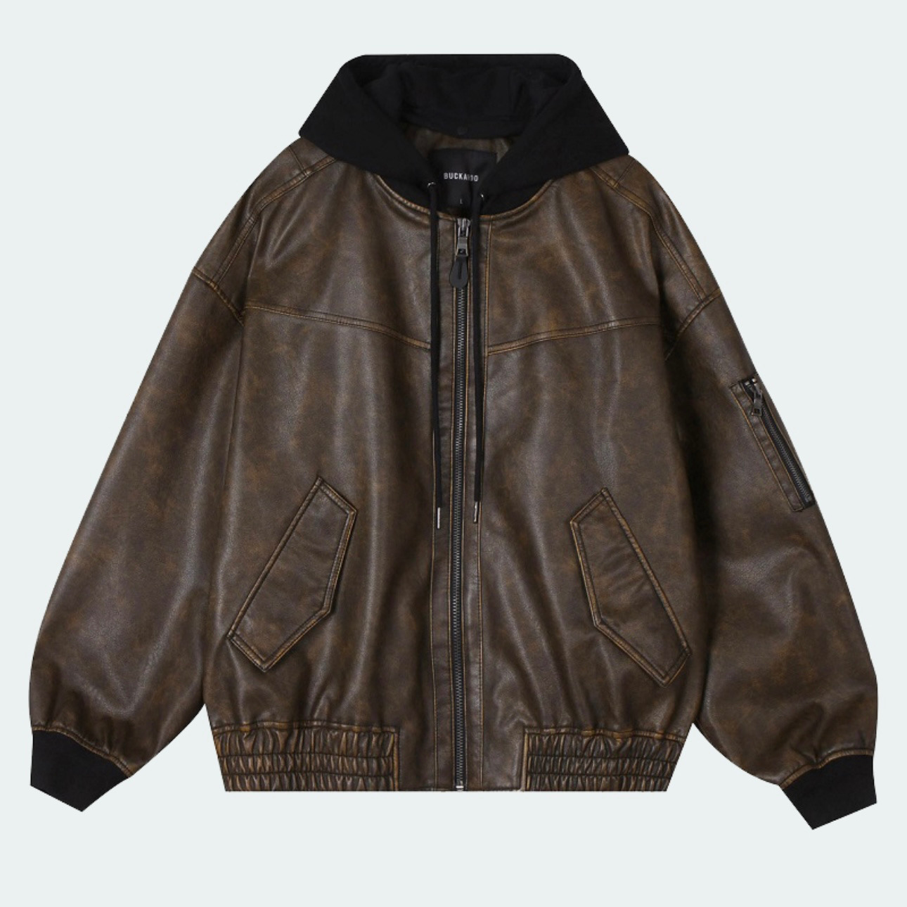 인기 남성 인조가죽 탈착 항공 점퍼_US