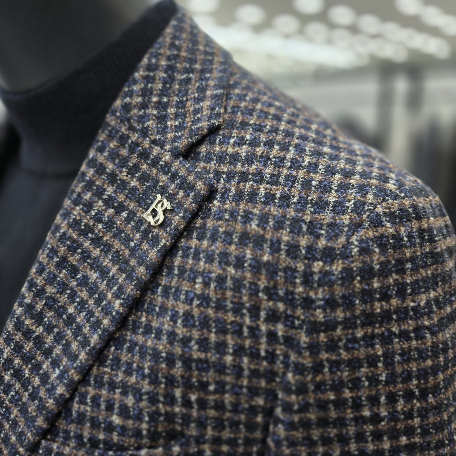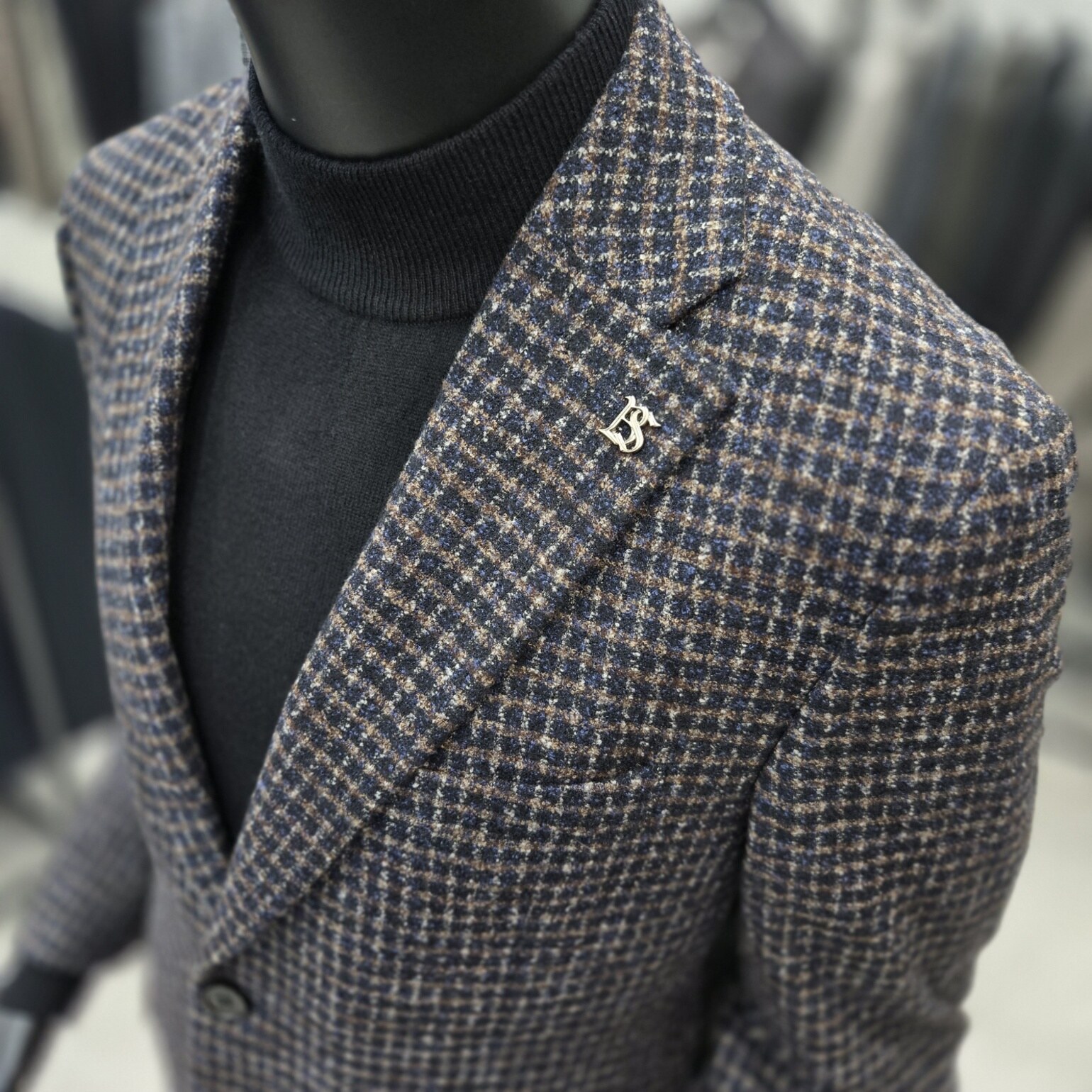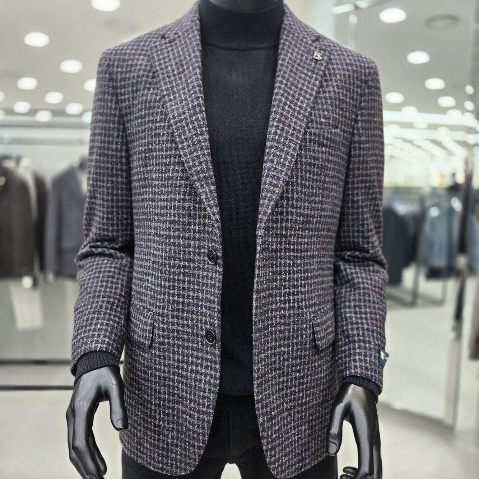 브라운컬러와 네이비컬러를 혼합해 출시한 모 실크소재의 자켓입니다