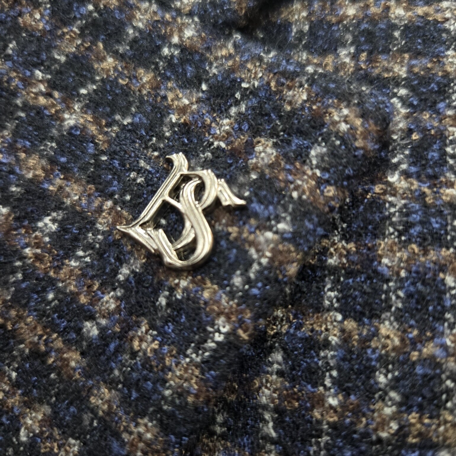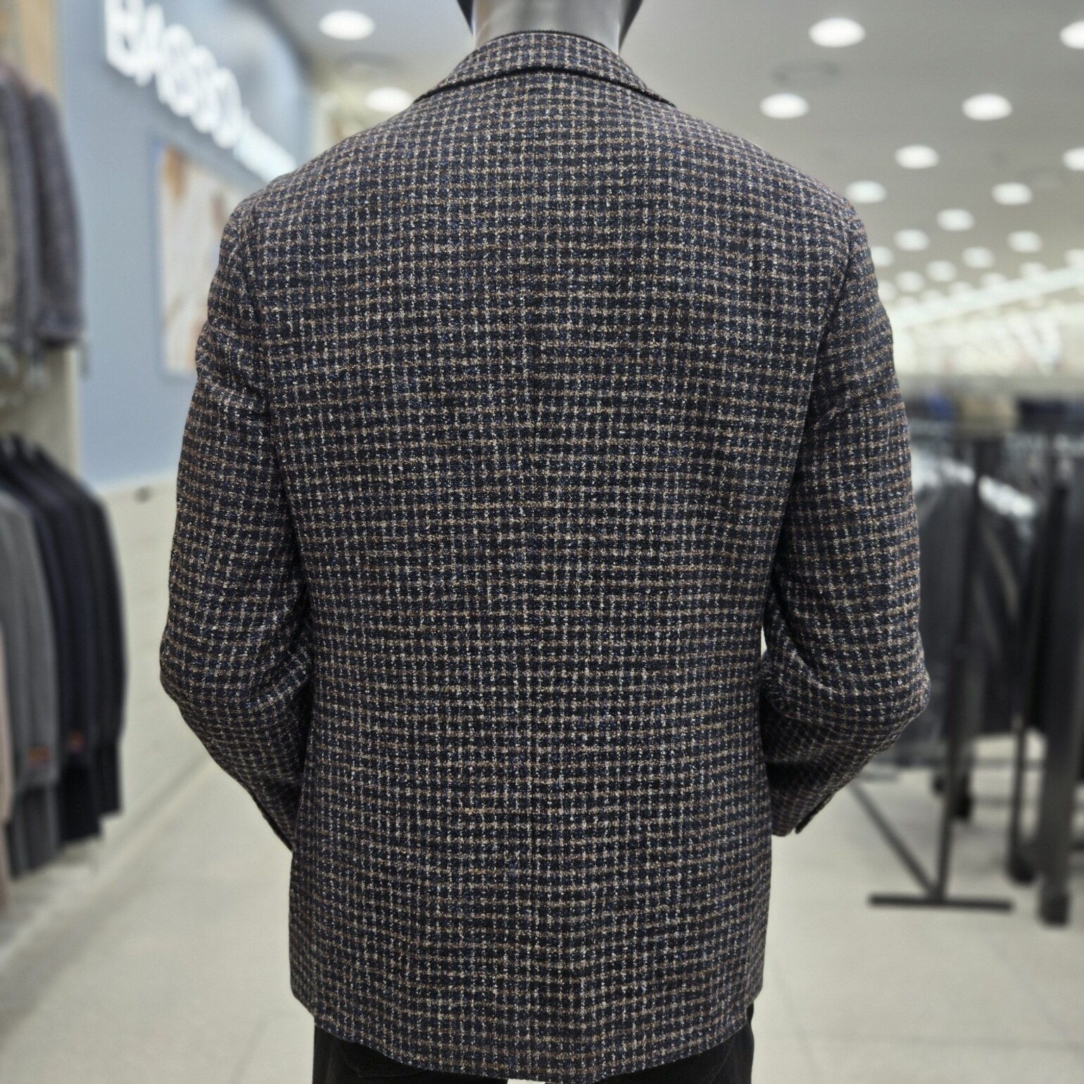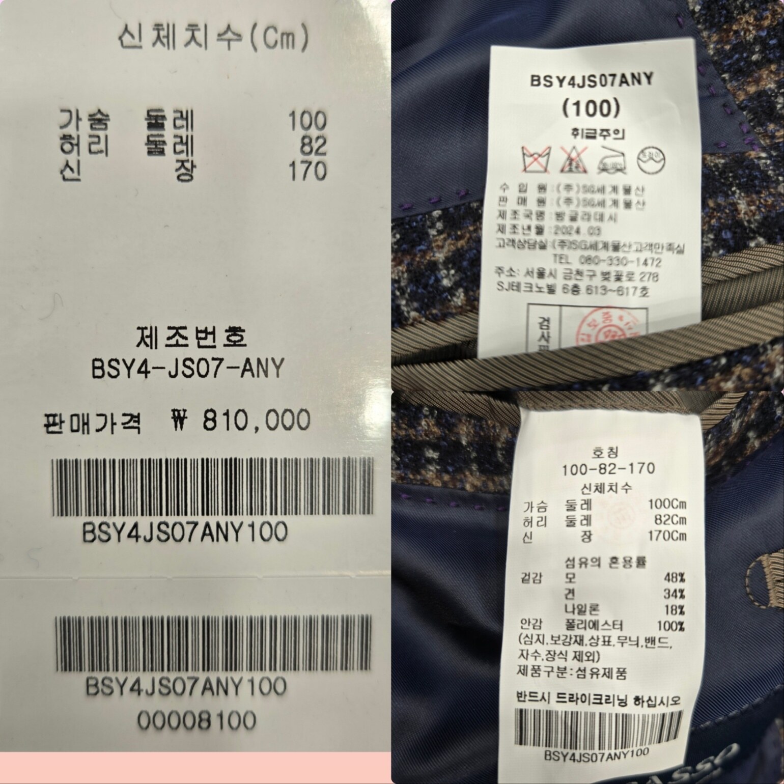 브라운컬러와 네이비컬러를 혼합해 출시한 모 실크소재의 자켓입니다