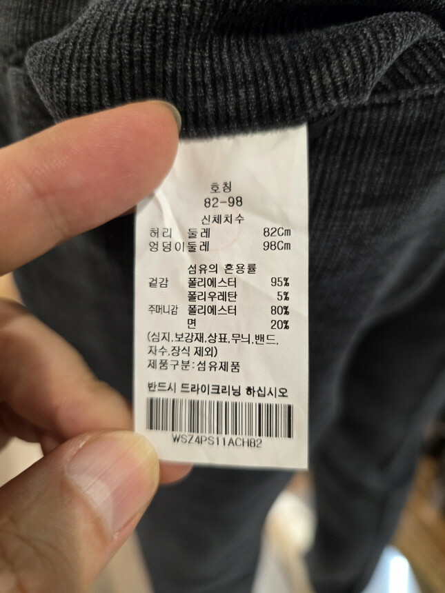 겉감 : 폴리에스터 95% , 폴리우레탄 5%