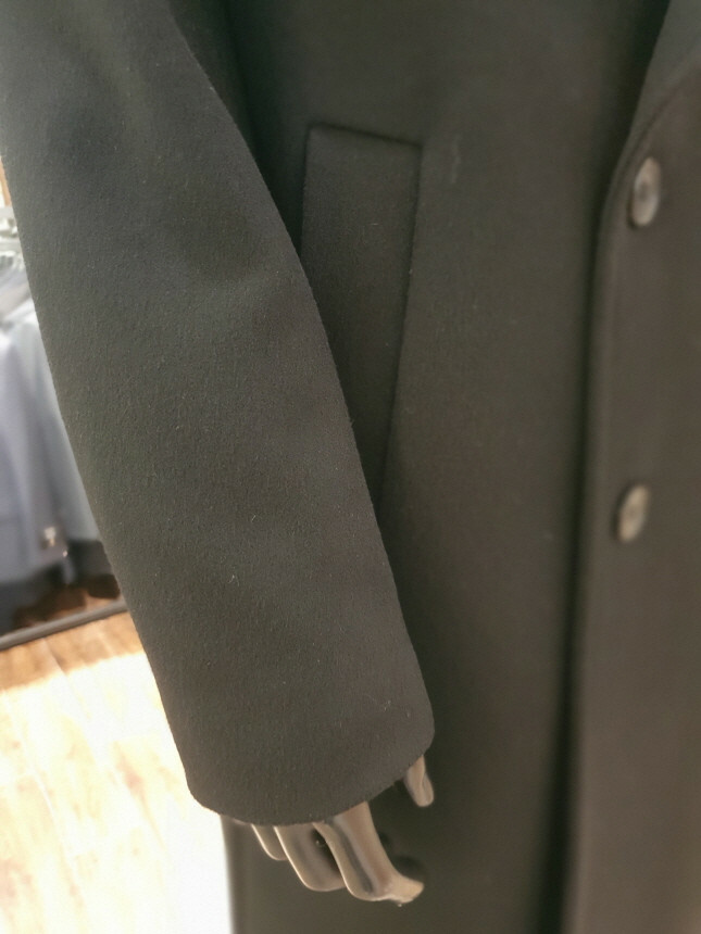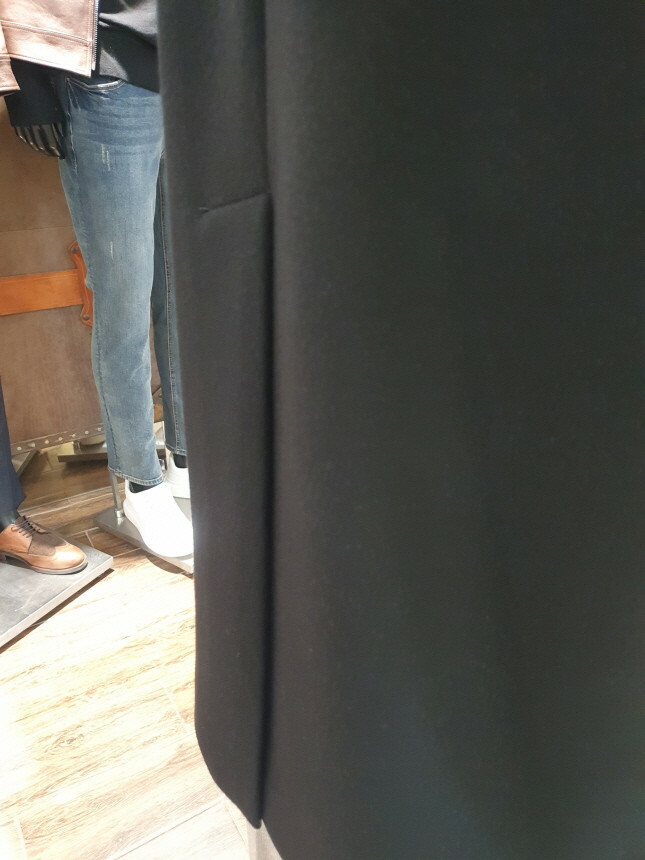 롱한 기장감에 오버라인으로 떨어지는 핏으로