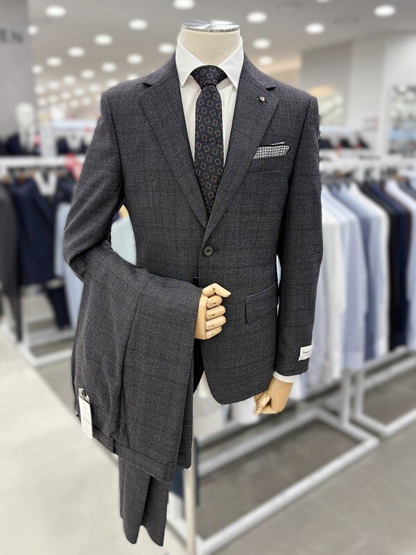 은은한 쉐도우 글렌체크 패턴이 고급러운 차콜 체크 컬러 정장 세트
