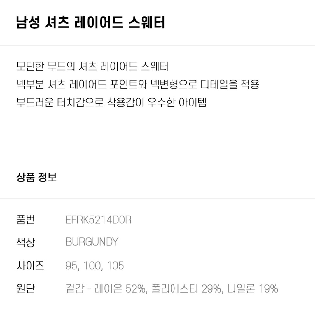 남성 셔츠 레이어드 스웨터EFRK5214D0R