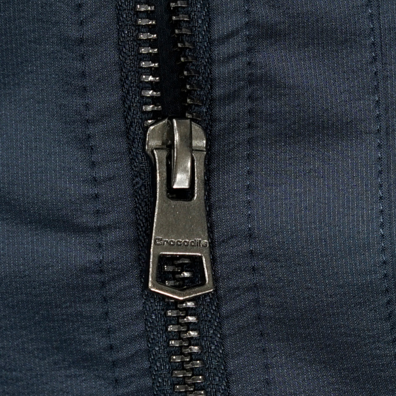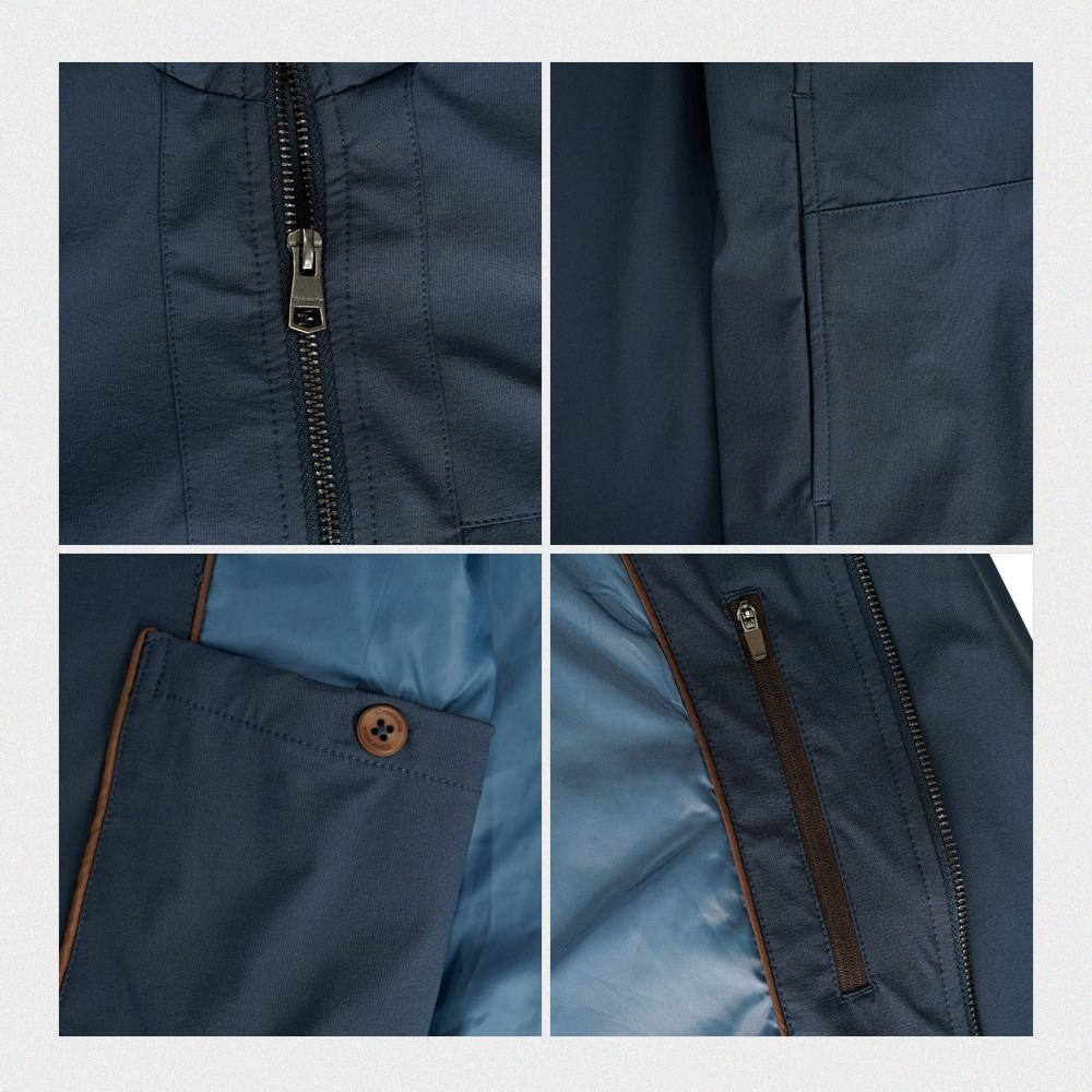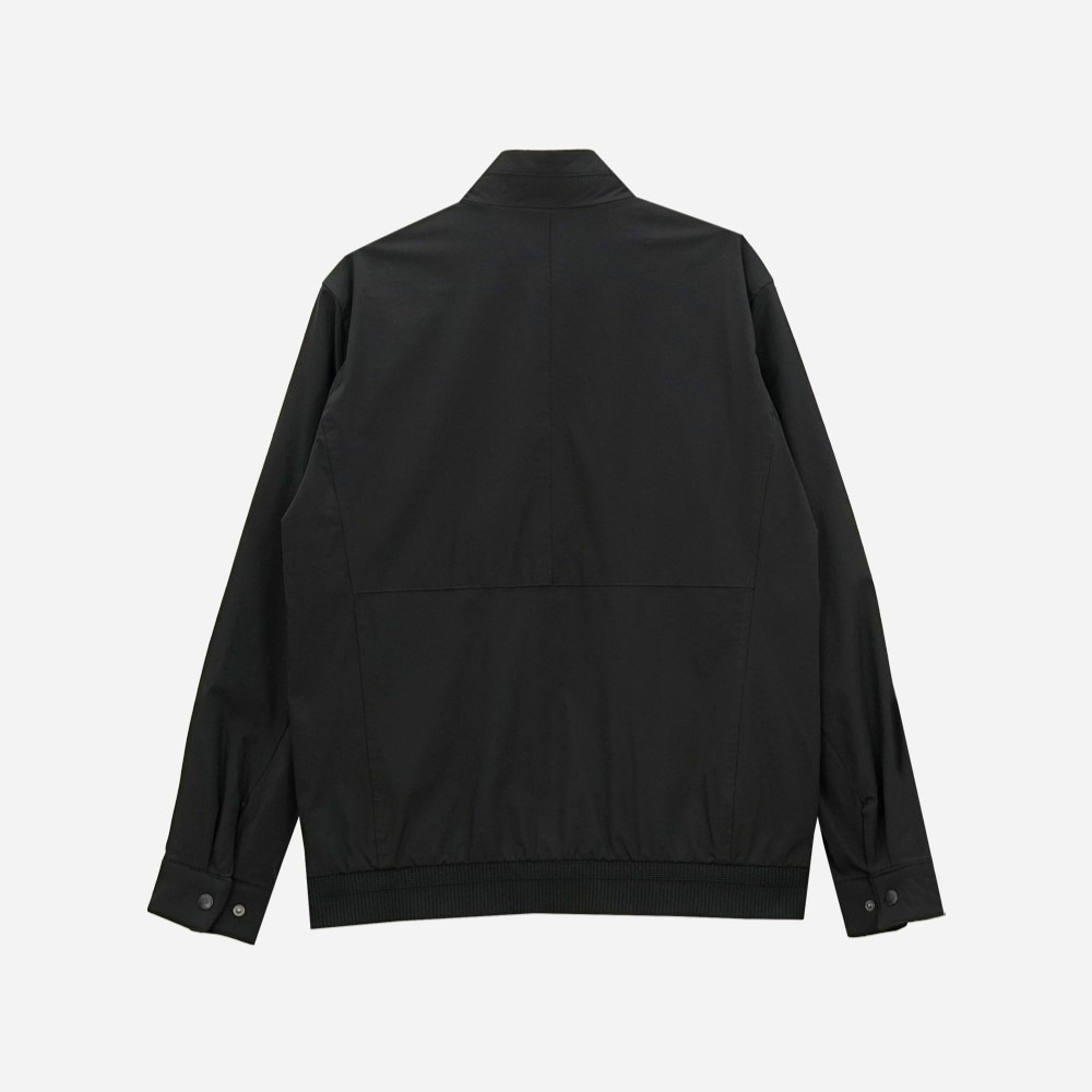 고밀도 나일론 스판 소재로 탄탄하면서 4-WAY 스트레치가 되어 신축성이 좋은 점퍼입니다. 앞판 디테일과 밑단의 이중조직 니트 배색이 포인트입니다.