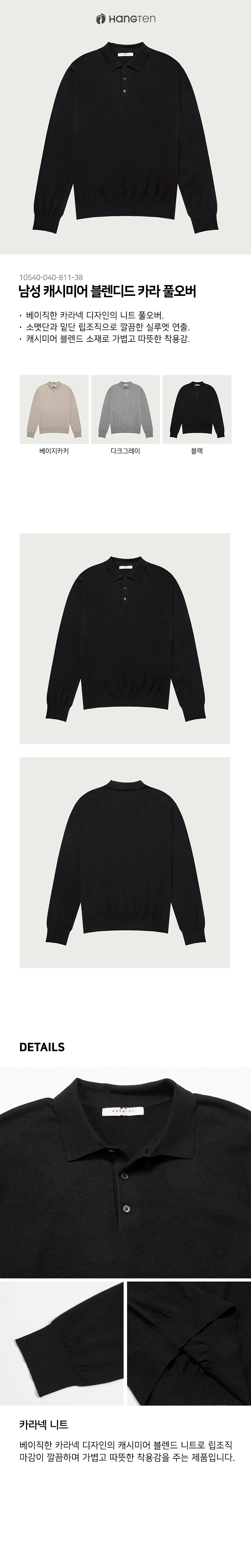 남성 캐시미어 블렌디드 카라 풀오버 100 10540 040 811 38 _P409356620